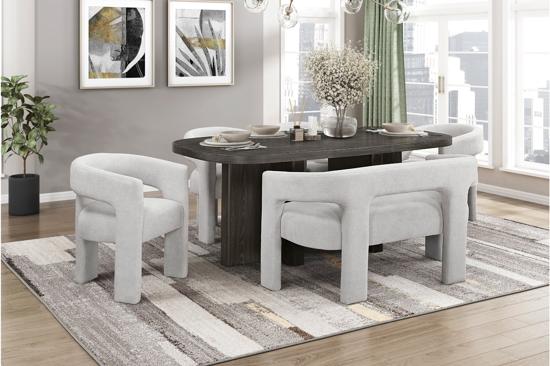 Marais Ebony/Light Gray Boucle Dining Set