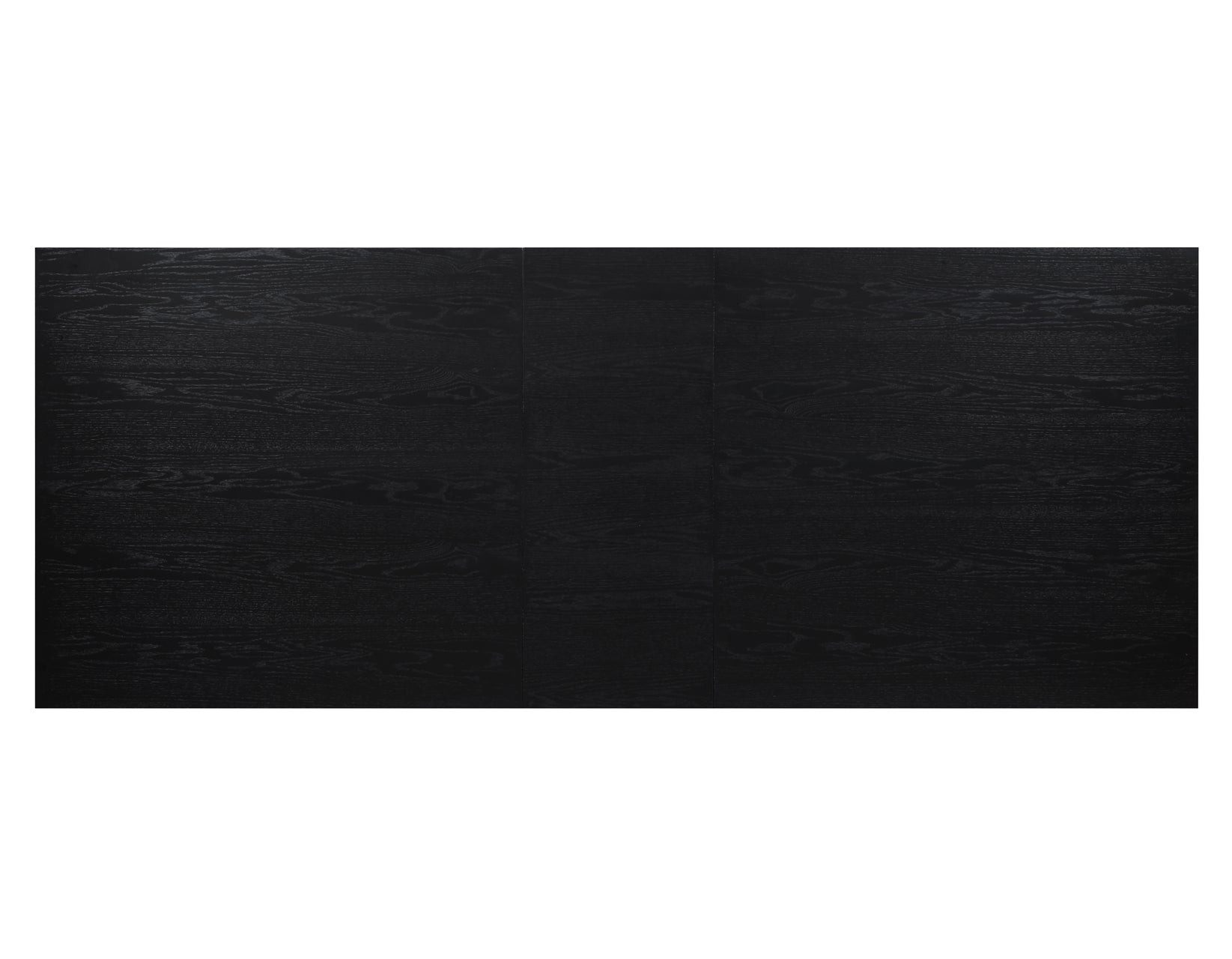 The Magnolia 80-96″ Dining Set exudes modern sophistication. The dining table boasts bold, clean lines and an expandable top, adorned with a striking ebony stain and gold accents. Accommodating up to eight guests, it effortlessly extends from 80 to 96 inches with the included 16-inch leaf. Paired with the Magnolia Side Chair, this upholstered seat offers tailored elegance with side welting and a linen-look polyester cover for easy cleaning. Guests will relish the 4-inch cushioned seat atop the solid wood twin scissor leg base. Elevate your dining space with this blend of comfort and beauty. Discover more sophisticated dining sets at Luna Furniture.