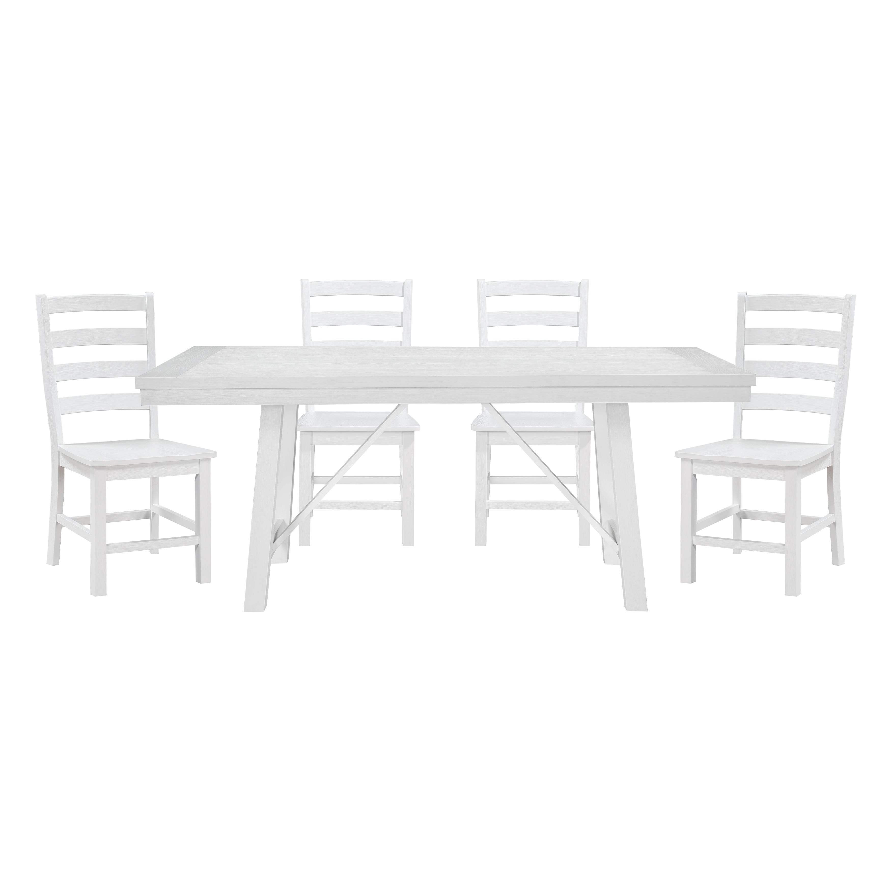 Seating six, the Redmond Collection’s design is inspired by the casual farmhouse movement, utilizing unfettered lines, and natural texture to create this charming dining group. The wood side chair’s classic profile pairs with the modified A-frame picnic table base, culminating in a casual style solidifies your desired farmhouse aesthetic. The distinct grain of the collection’s oak veneer is highlighted by the white finish.