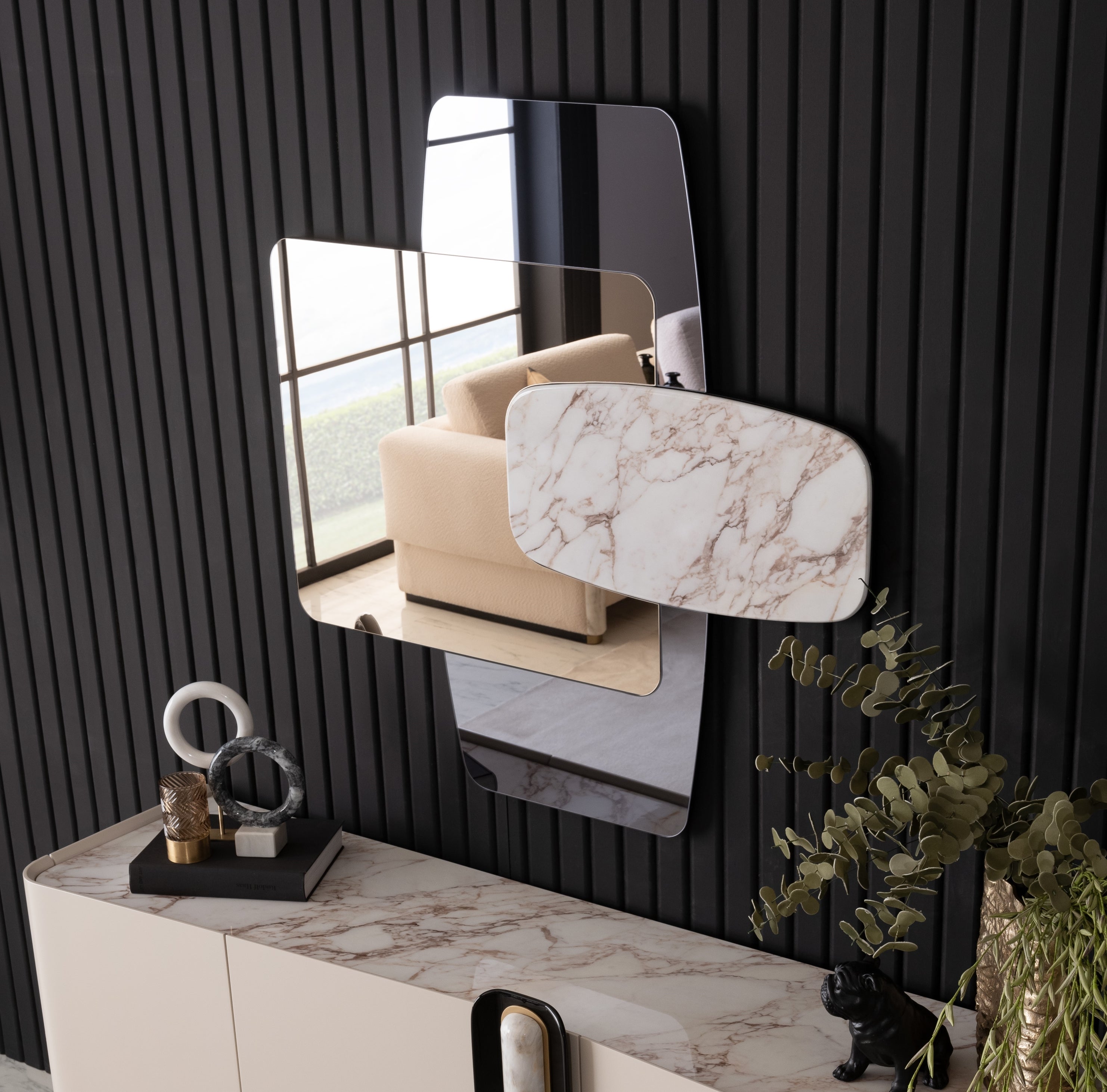 The Luciano Accent Mirror is a statement piece that redefines luxury with its contemporary elegance and artistic design. Featuring a layered composition of reflective surfaces and stunning marble detailing, this mirror is more than just a functional piece—it’s an architectural masterpiece that enhances the depth and ambiance of any space. Perfect for dining areas, entryways, or living rooms, the Luciano Accent Mirror adds dimension, light, and sophistication to your interior.