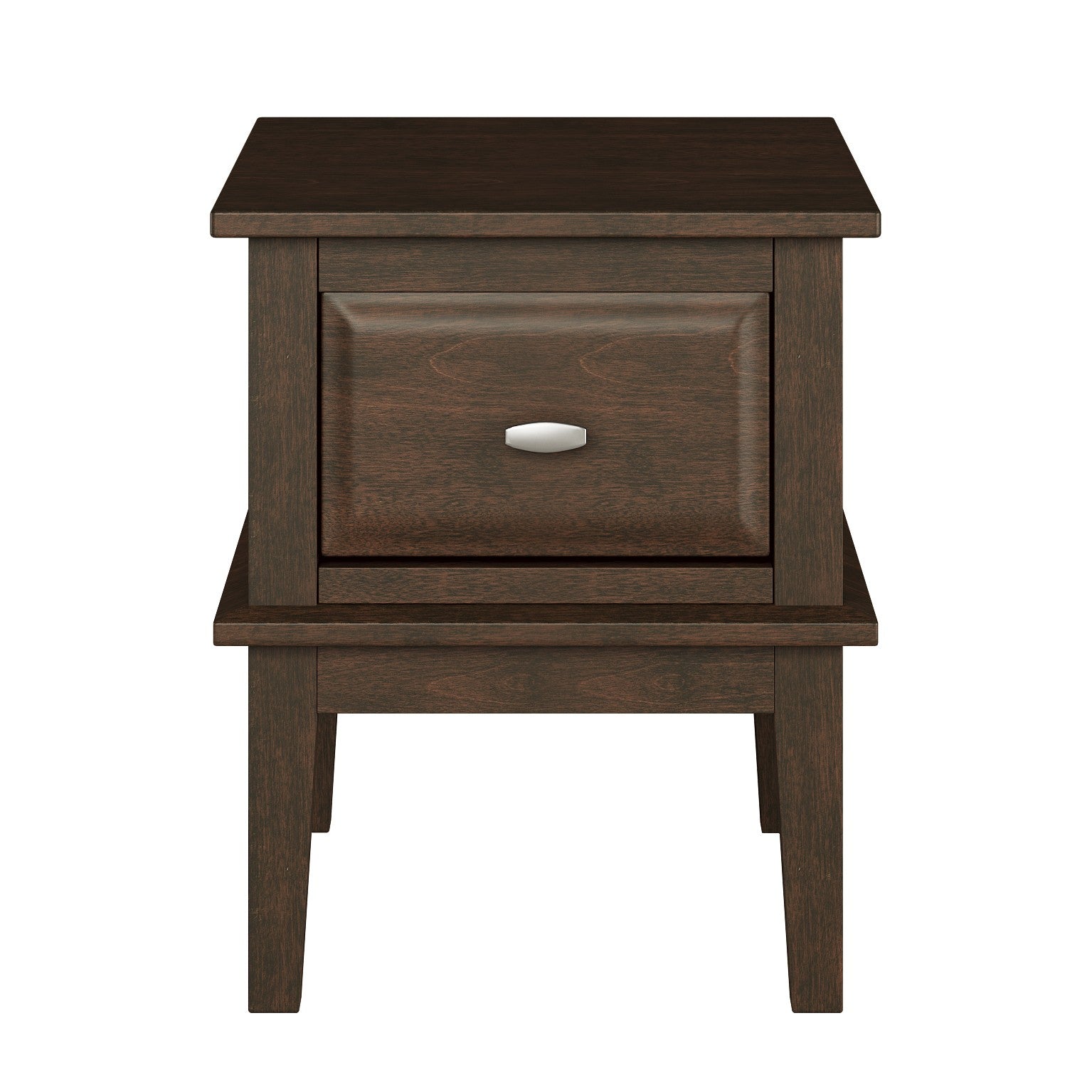 The transitional styling of the Minot Collection presents a versatile option for placement in classic to modern decorative environments. The brown cherry finish highlights the grain of the birch veneer with satin nickel hardware providing subtle contrast. The drawer of the end table creates functional storage space within your living room.
