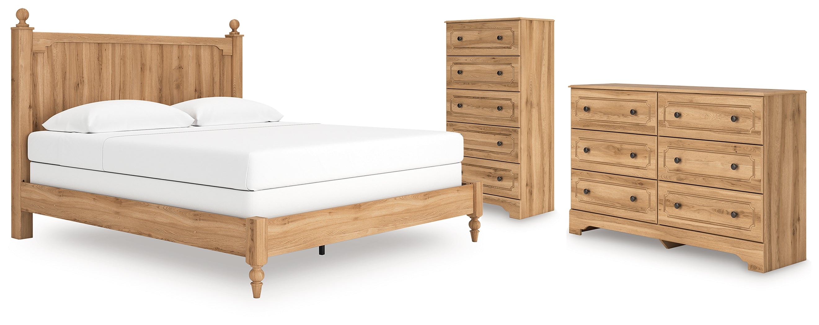 Aleaport King Panel Bed with Dresser and Chest in Warm Brown