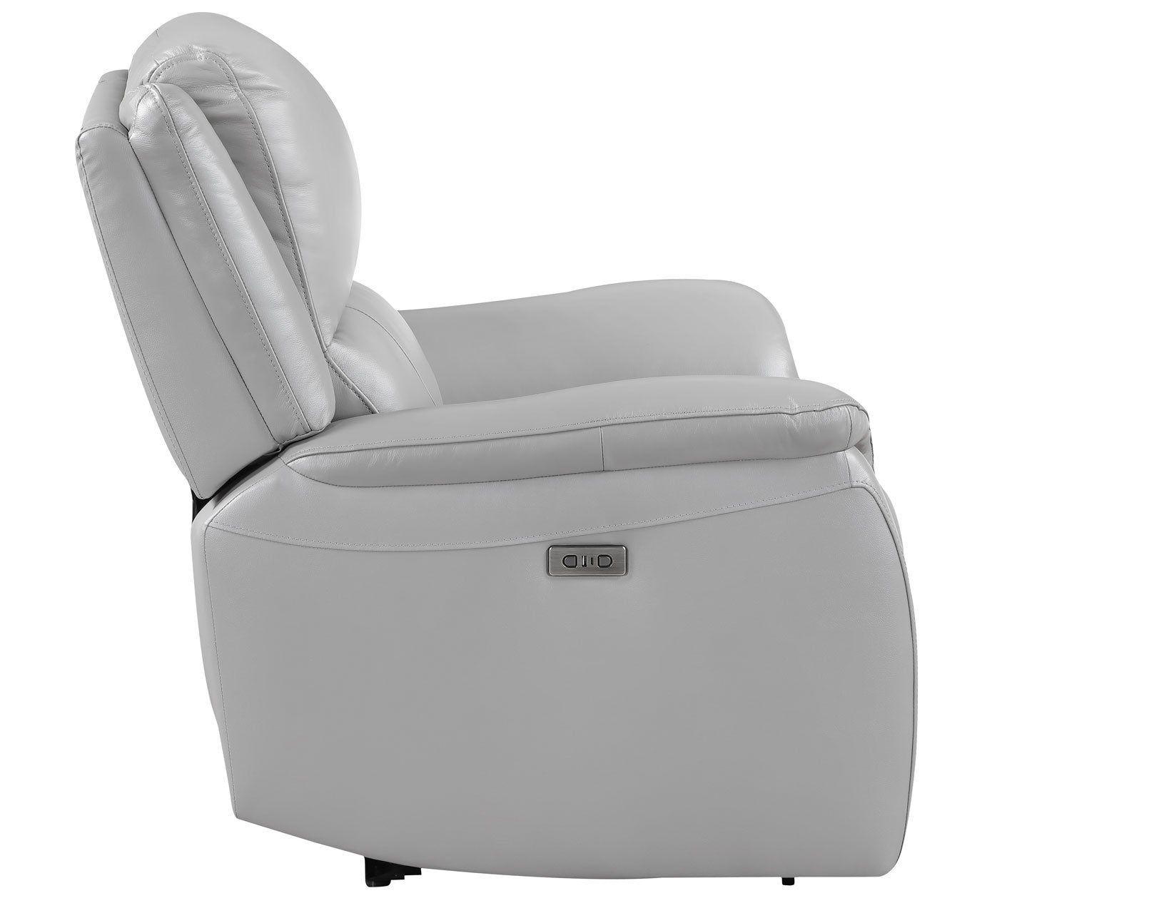 Create your own personal space of comfort with the Alexandria Power Recliner in Stone. Crafted with premium leather in a versatile, neutral tone, it fits effortlessly into any room. The smooth power mechanism offers a 143-degree recline while needing only 3″ of wall clearance—ideal for space-conscious settings. Sink into 7-inch plush cushioning designed for full-body support. A built-in USB charger keeps your devices powered and close. Perfectly tailored and thoughtfully engineered, the Alexandria Recliner blends modern convenience with timeless relaxation.