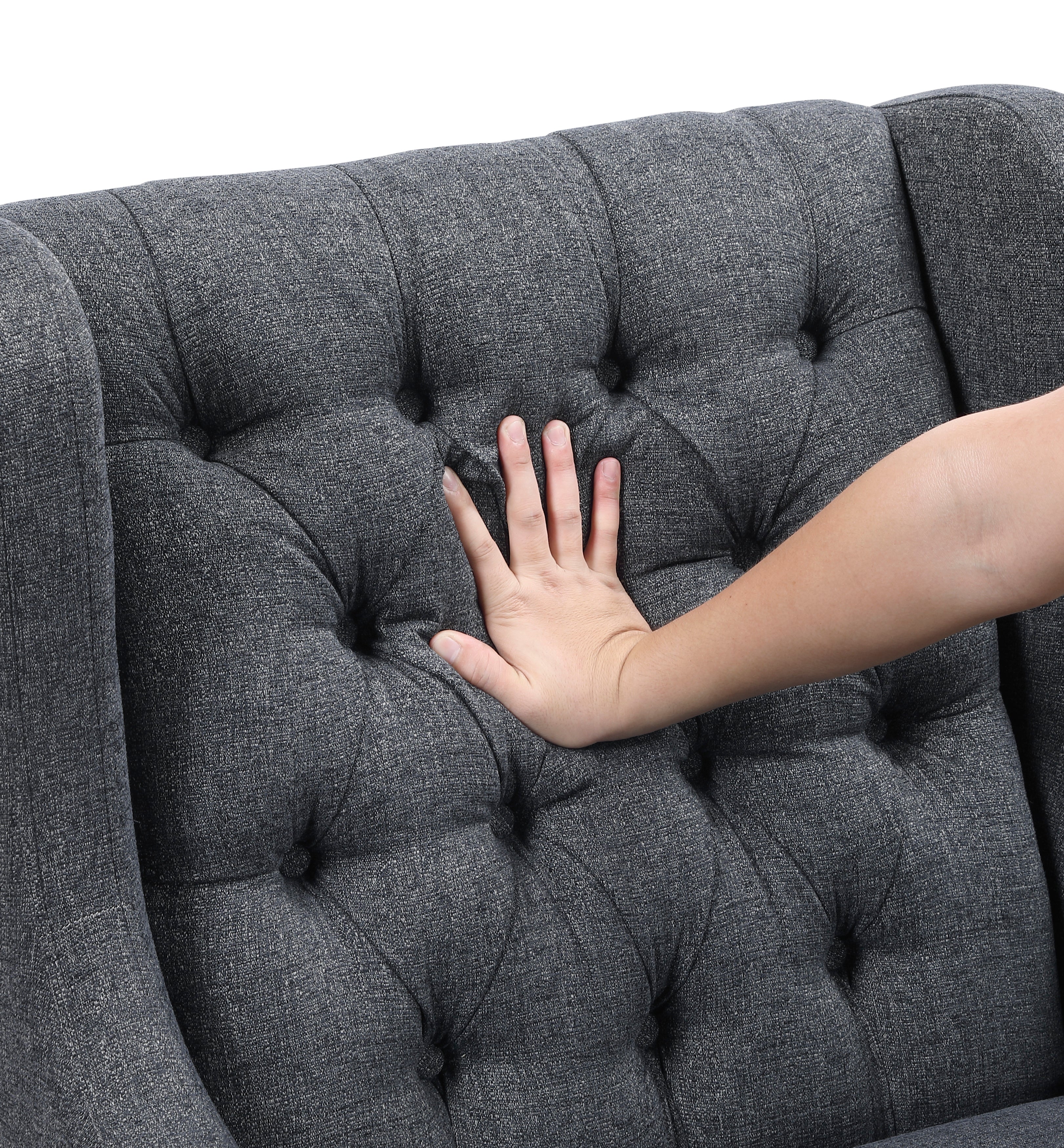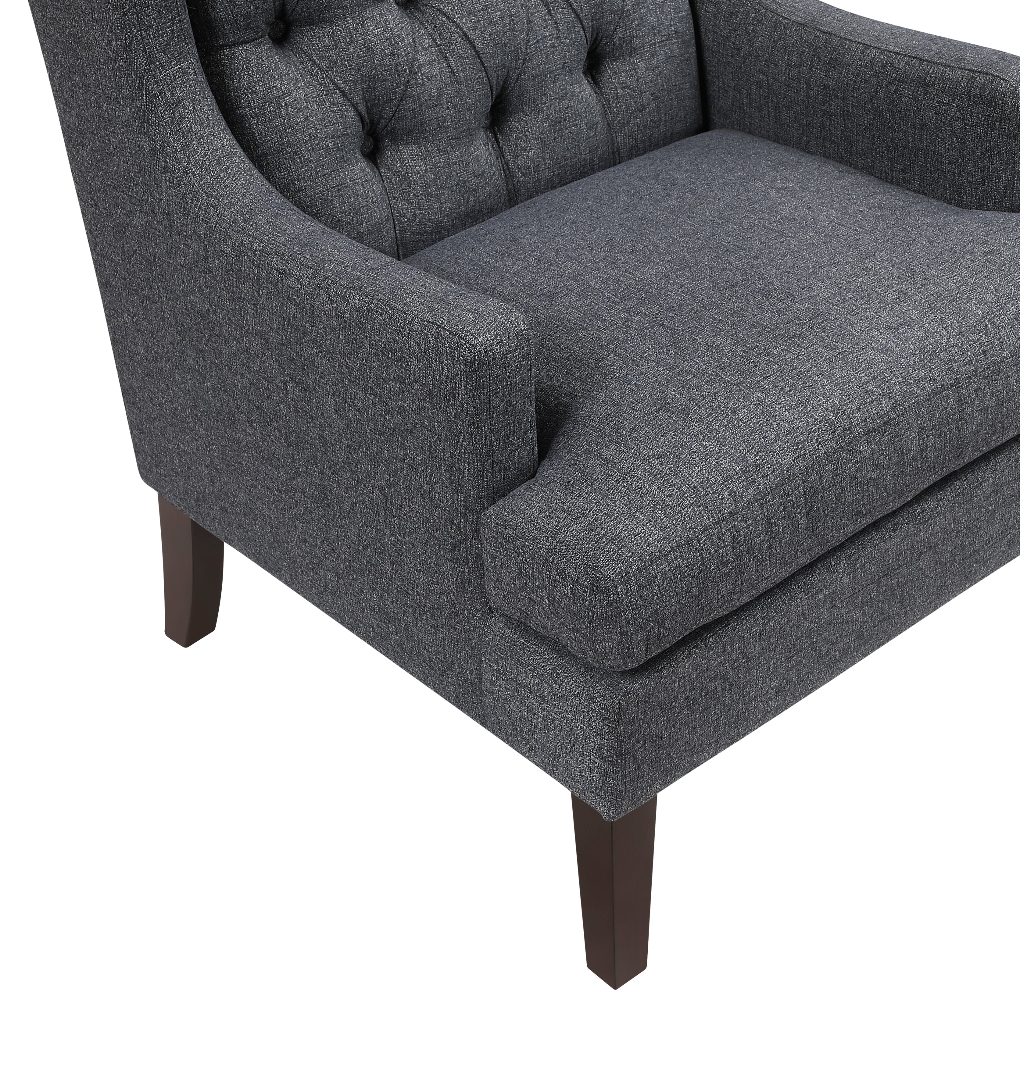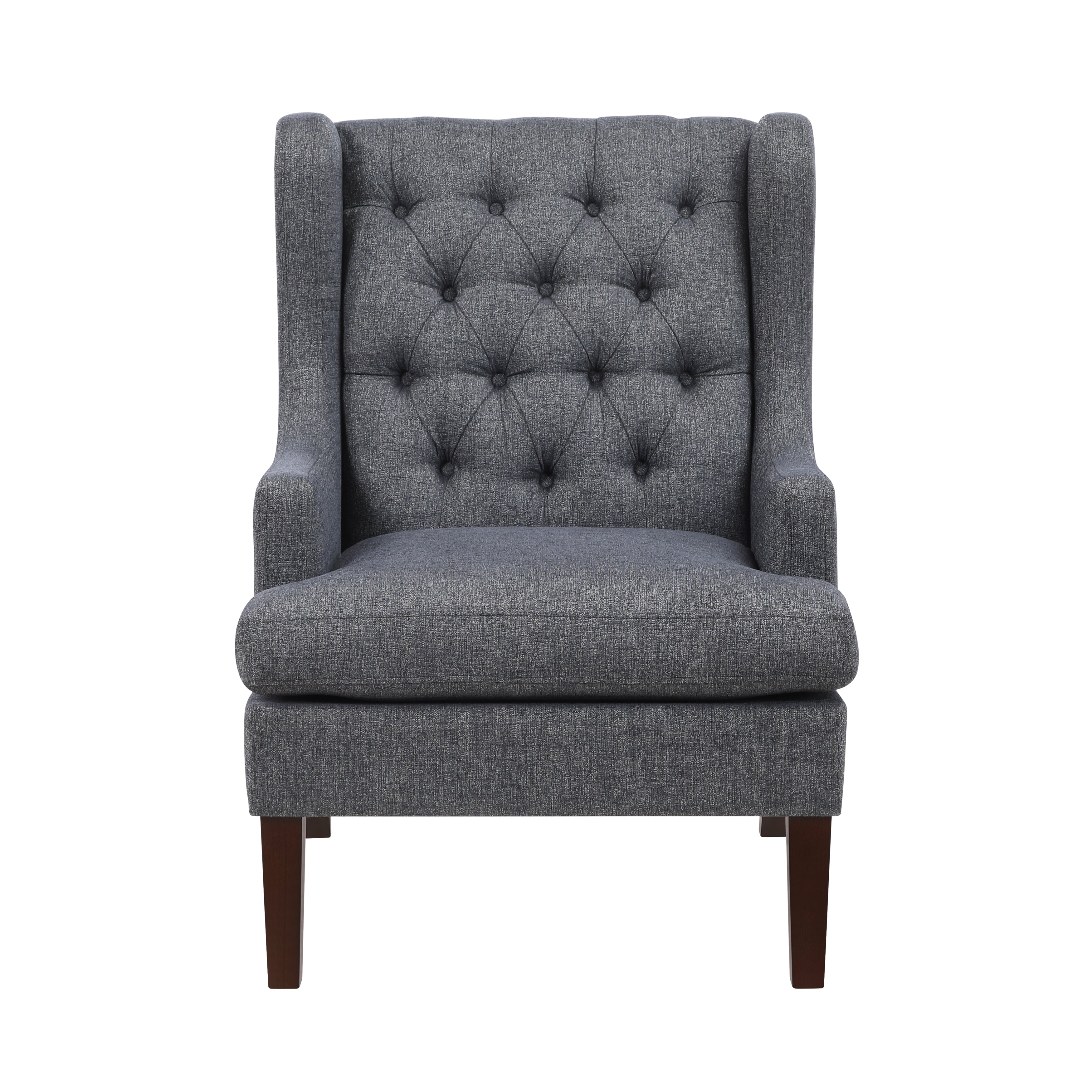 Bring a touch of sophisticated elegance to your home with this tufted wingback accent chair, designed for both comfort and timeless style. The high-back silhouette with deep button tufting creates a luxurious look, while the plush cushioned seat provides excellent support for relaxation. Crafted with soft yet durable fabric upholstery, this chair is complemented by sturdy wooden legs, ensuring long-lasting durability and stability. Whether placed in a living room, bedroom, reading nook, or office, this chair makes a stylish statement while offering a cozy retreat for lounging or entertaining.