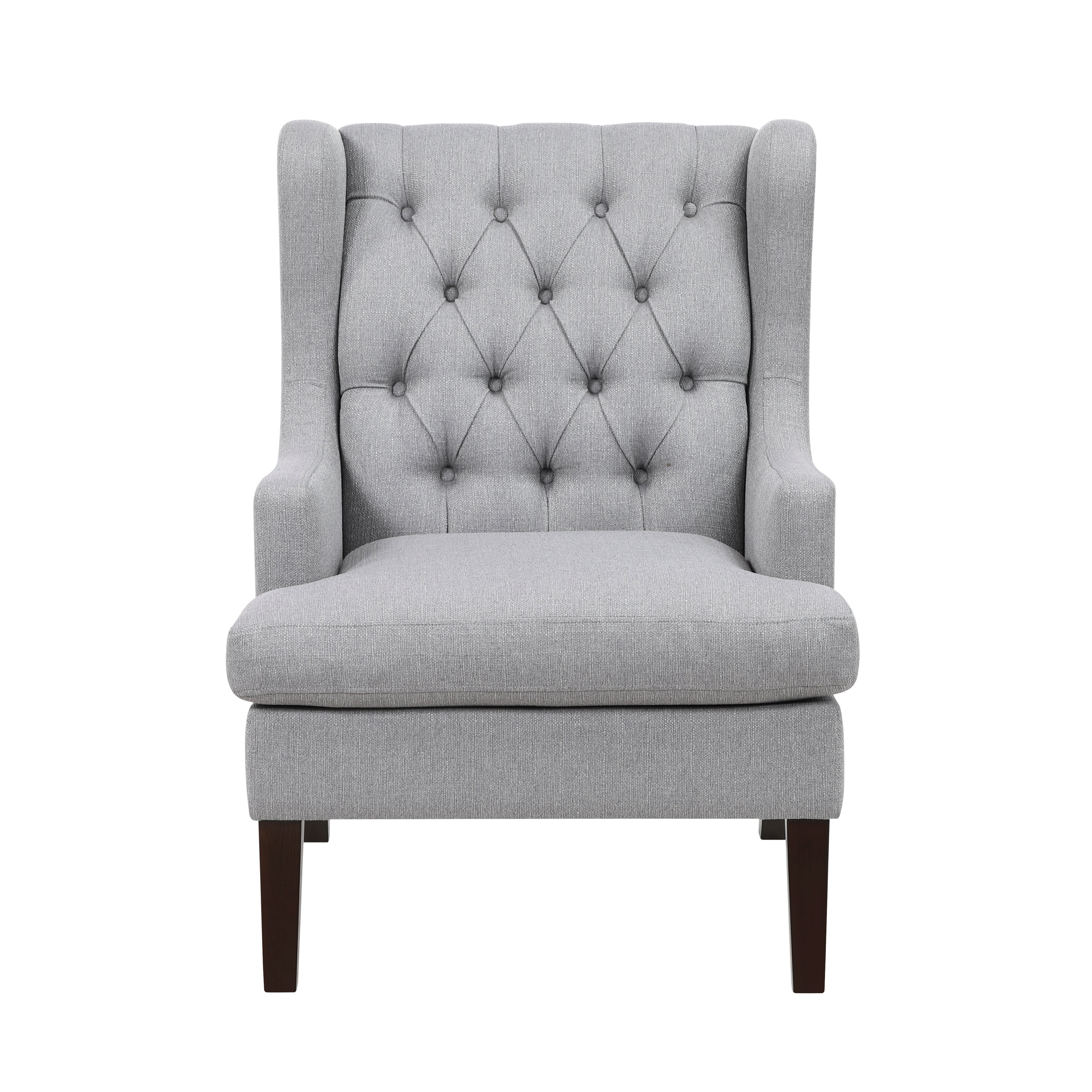 Bring a touch of sophisticated elegance to your home with this tufted wingback accent chair, designed for both comfort and timeless style. The high-back silhouette with deep button tufting creates a luxurious look, while the plush cushioned seat provides excellent support for relaxation. Crafted with soft yet durable fabric upholstery, this chair is complemented by sturdy wooden legs, ensuring long-lasting durability and stability. Whether placed in a living room, bedroom, reading nook, or office, this chair makes a stylish statement while offering a cozy retreat for lounging or entertaining.