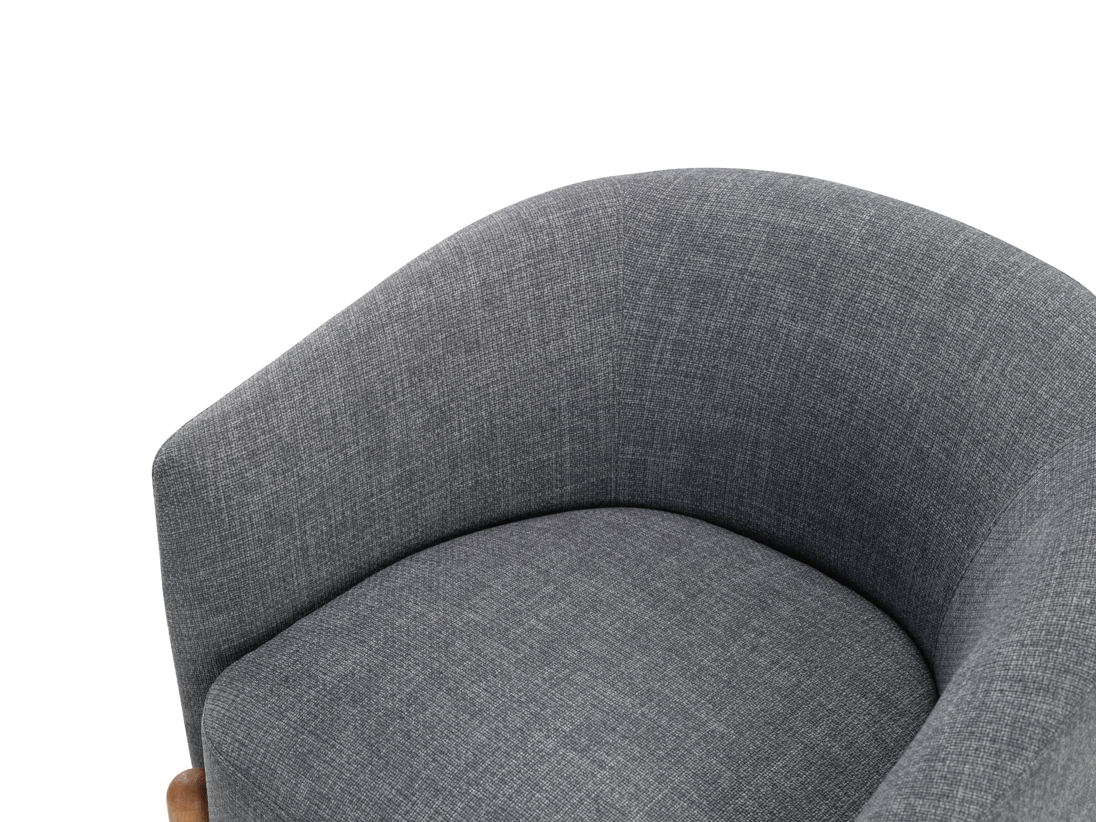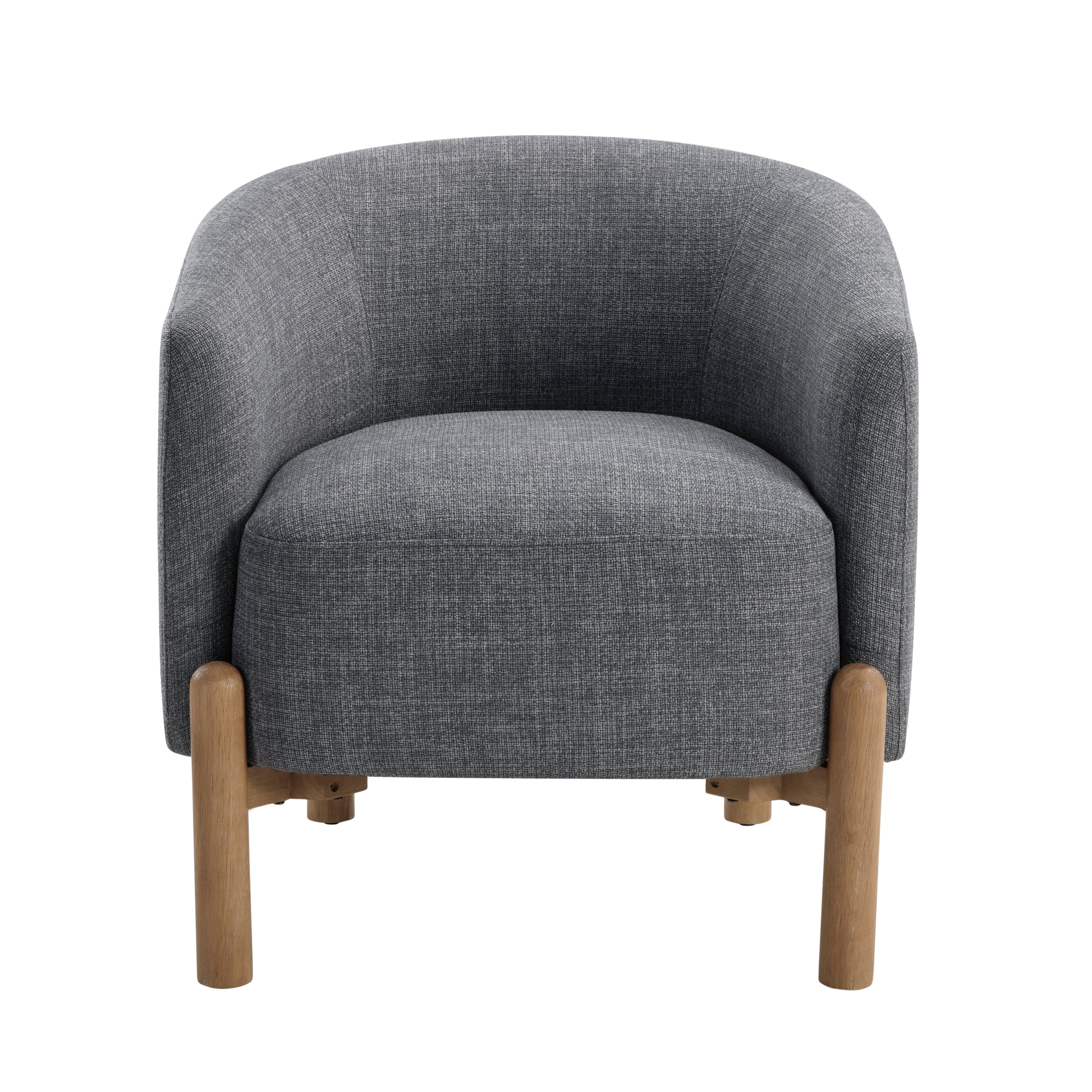 Upgrade your living space with this contemporary taupe fabric barrel chair, designed for both style and comfort. Featuring a durable plywood frame and foam padding over pocket coils, this chair provides exceptional support and a luxurious seating experience. The textured gray fabric upholstery adds a touch of modern sophistication, while the attached back and seat cushions offer a clean, tailored look. The solid wood legs in a light brown finish provide a warm and stylish foundation, complementing any décor. With a 300lb weight capacity and easy assembly, this chair is perfect for adding a cozy and elegant touch to your living room, bedroom, or reading nook.