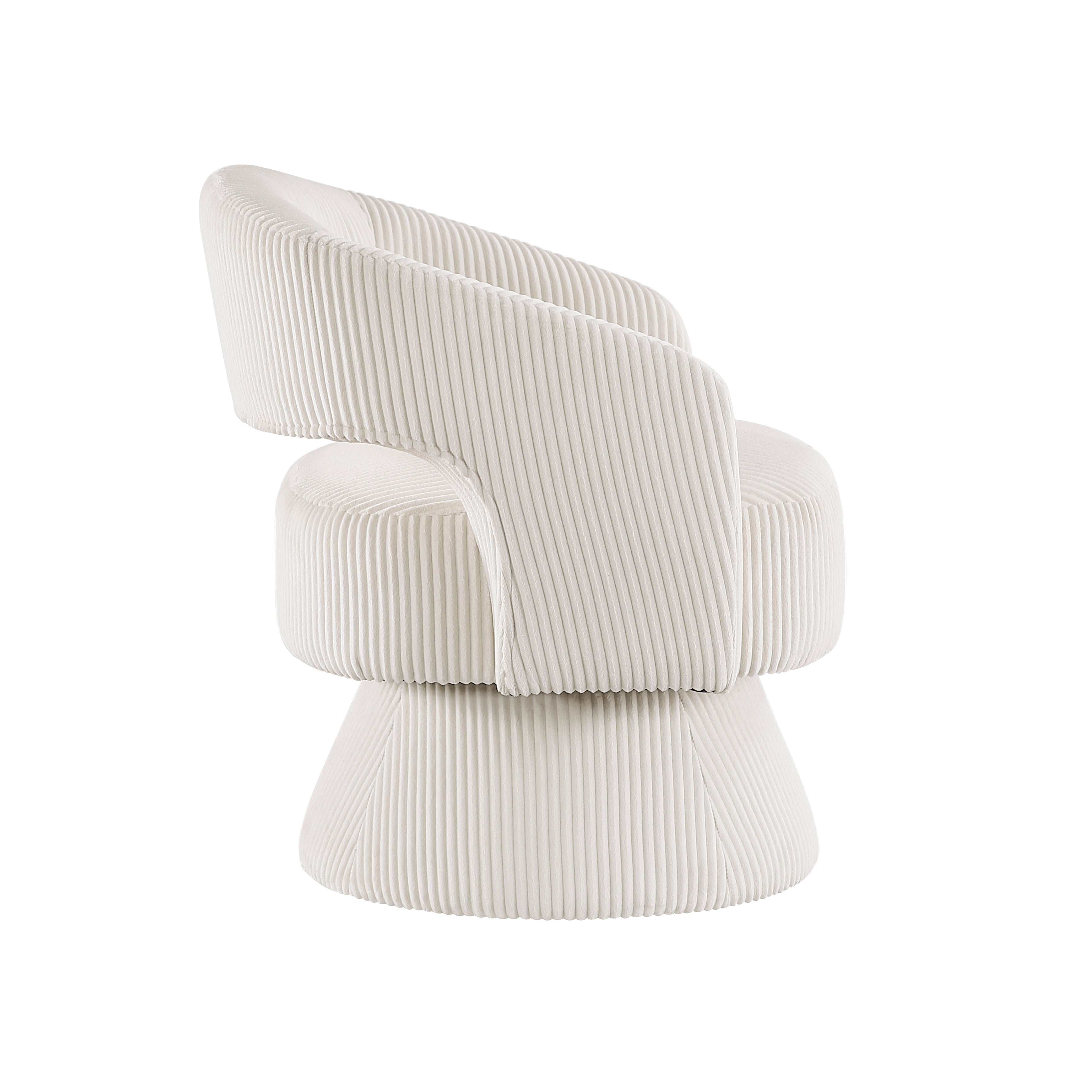 Elevate your home with this modern corduroy swivel accent chair, featuring a unique textured design and soft corduroy upholstery. Perfect for those seeking a blend of style and comfort, this chair’s eye-catching shape and luxurious fabric add a sophisticated touch to any space. The 360-degree swivel base allows for versatile movement, making it an ideal choice for living rooms, bedrooms, or stylish home offices. Its minimalist aesthetic and plush seating bring both functionality and elegance to contemporary interiors.