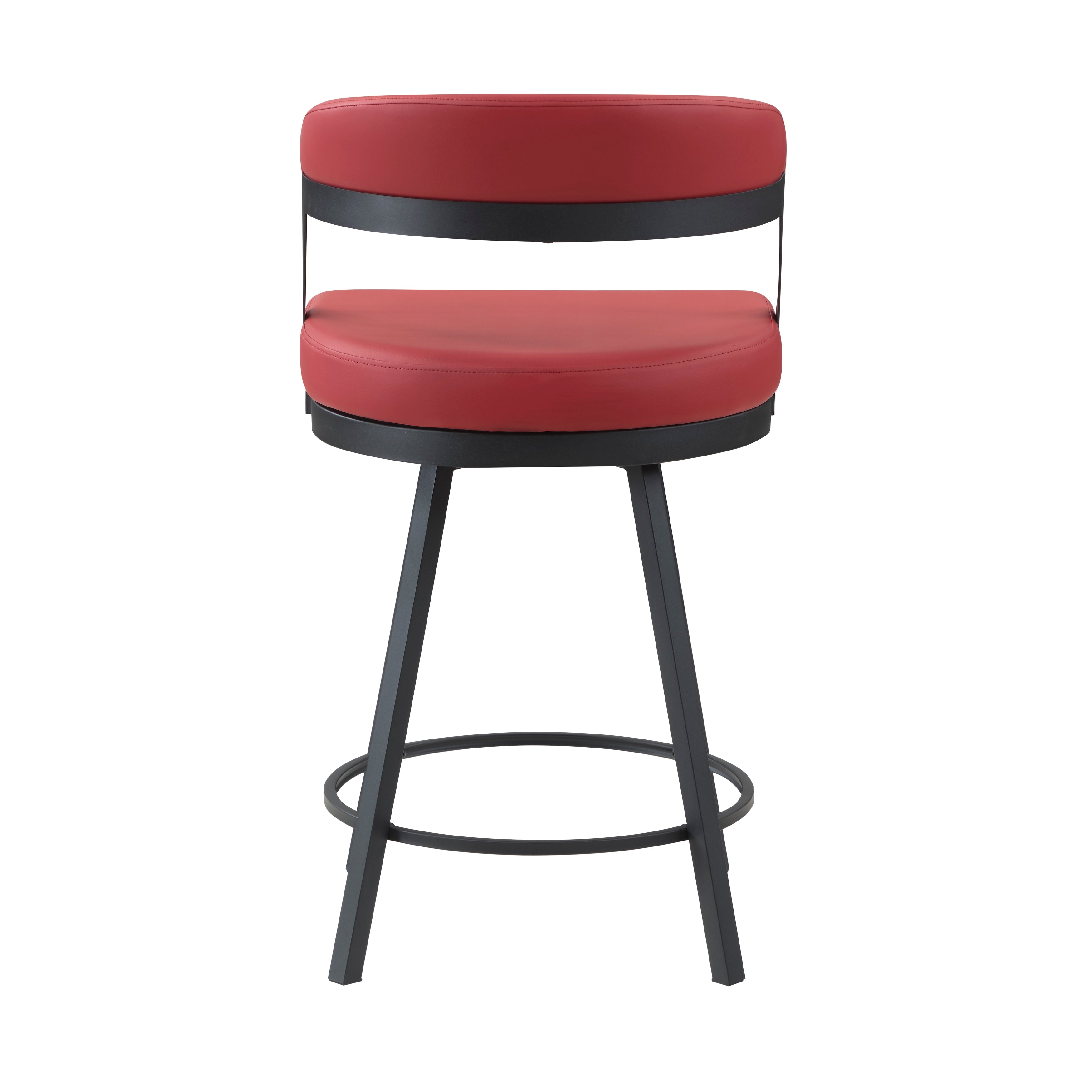 Designed for your home’s modern aesthetic, the Crowley Collection provides a stylish seating option for mealtime and social activities. The 24-inch height chair features a contoured back, metal framing, and red faux leather seat.