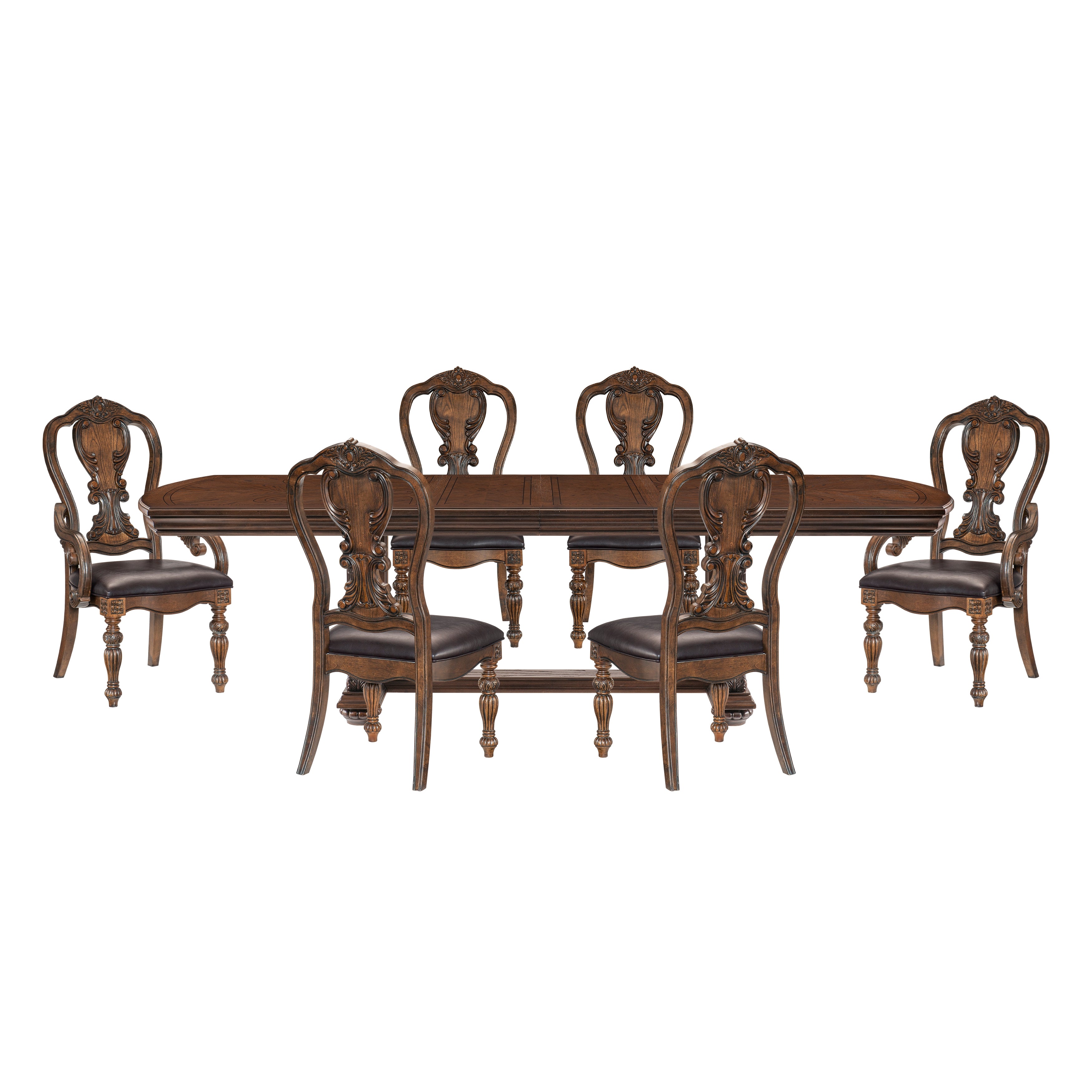 Bergen Dark Oak 7-Piece Double Extendable 108" Dining Set