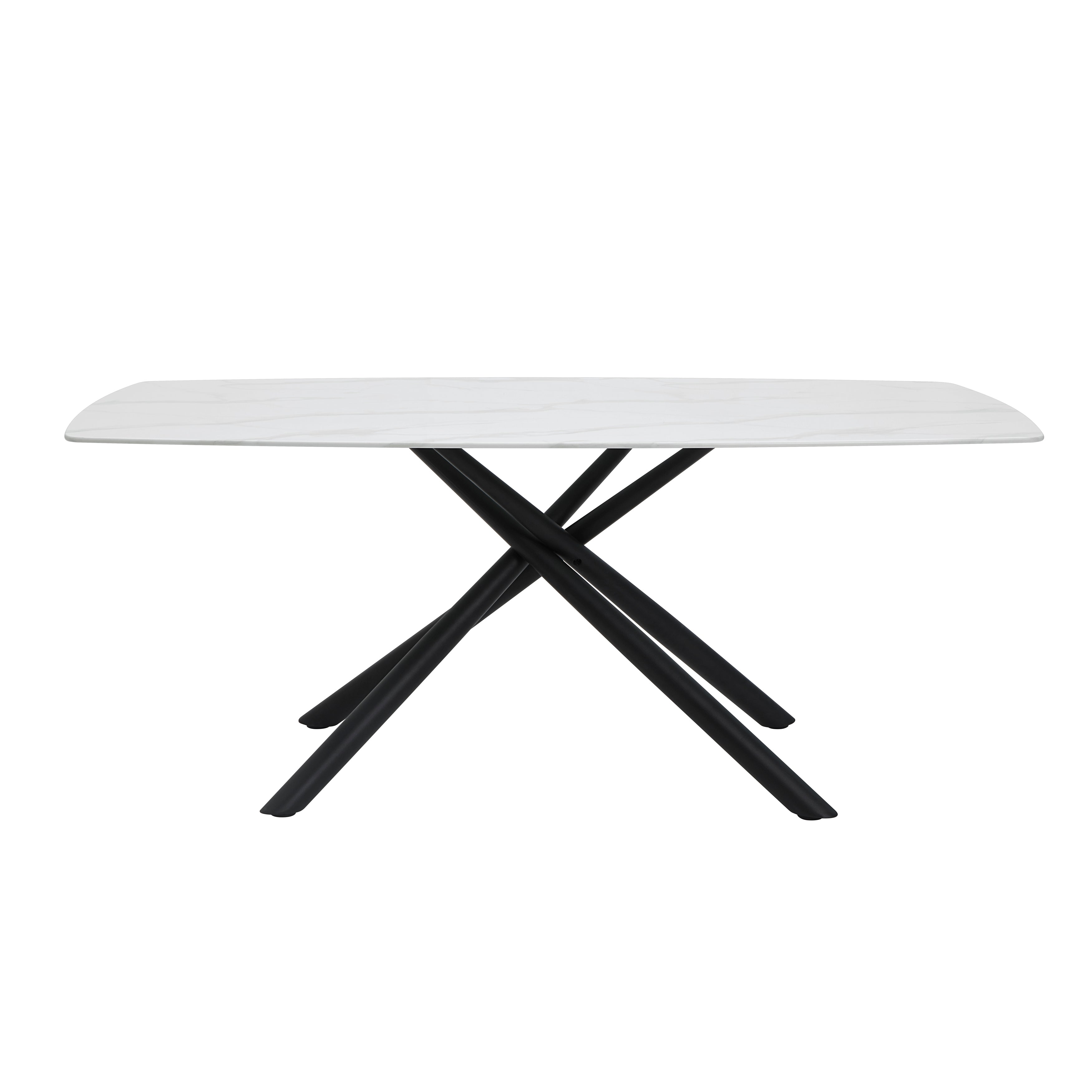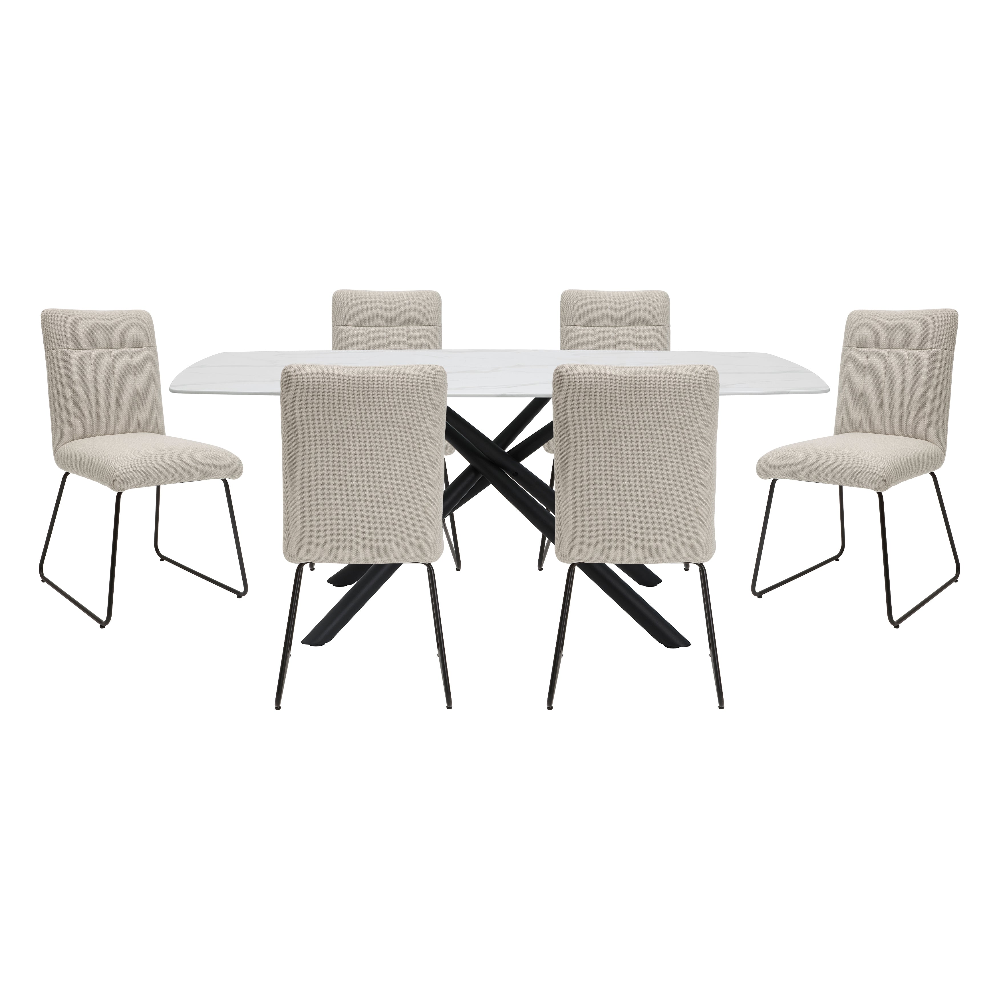 Benito Beige/Black/Marble Print Glass-Top 7-Piece Dining Set