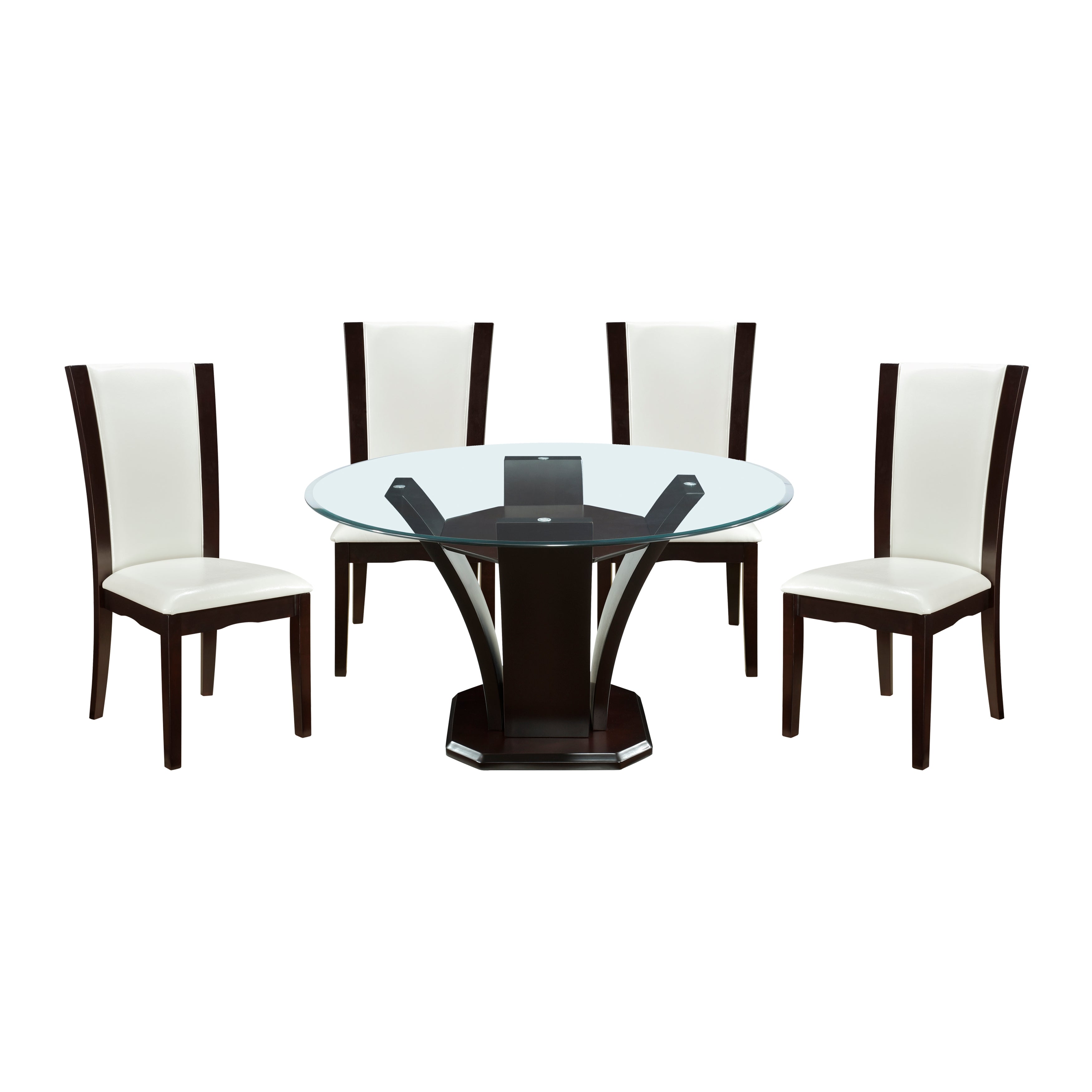 Daisy Espresso/White 5-Piece 48" Glass-Top Round Dining Room Set
