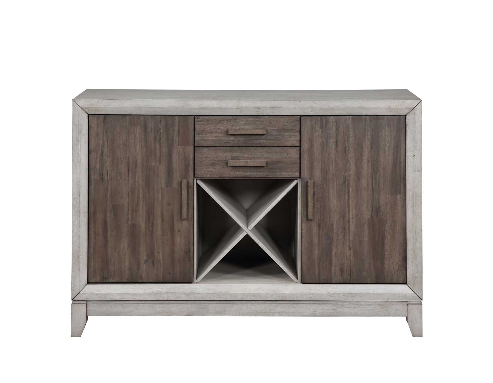 The 54-inch Abacus Server is a great storage solution for any room. Use as a Server in a dining room, a console in a hall area or behind a sofa or as an entertainment unit in the main room. Tow drawers and two doors offer space for hidden storage and the removable center wine rack offers a great solution for bottle storage or as a display area.