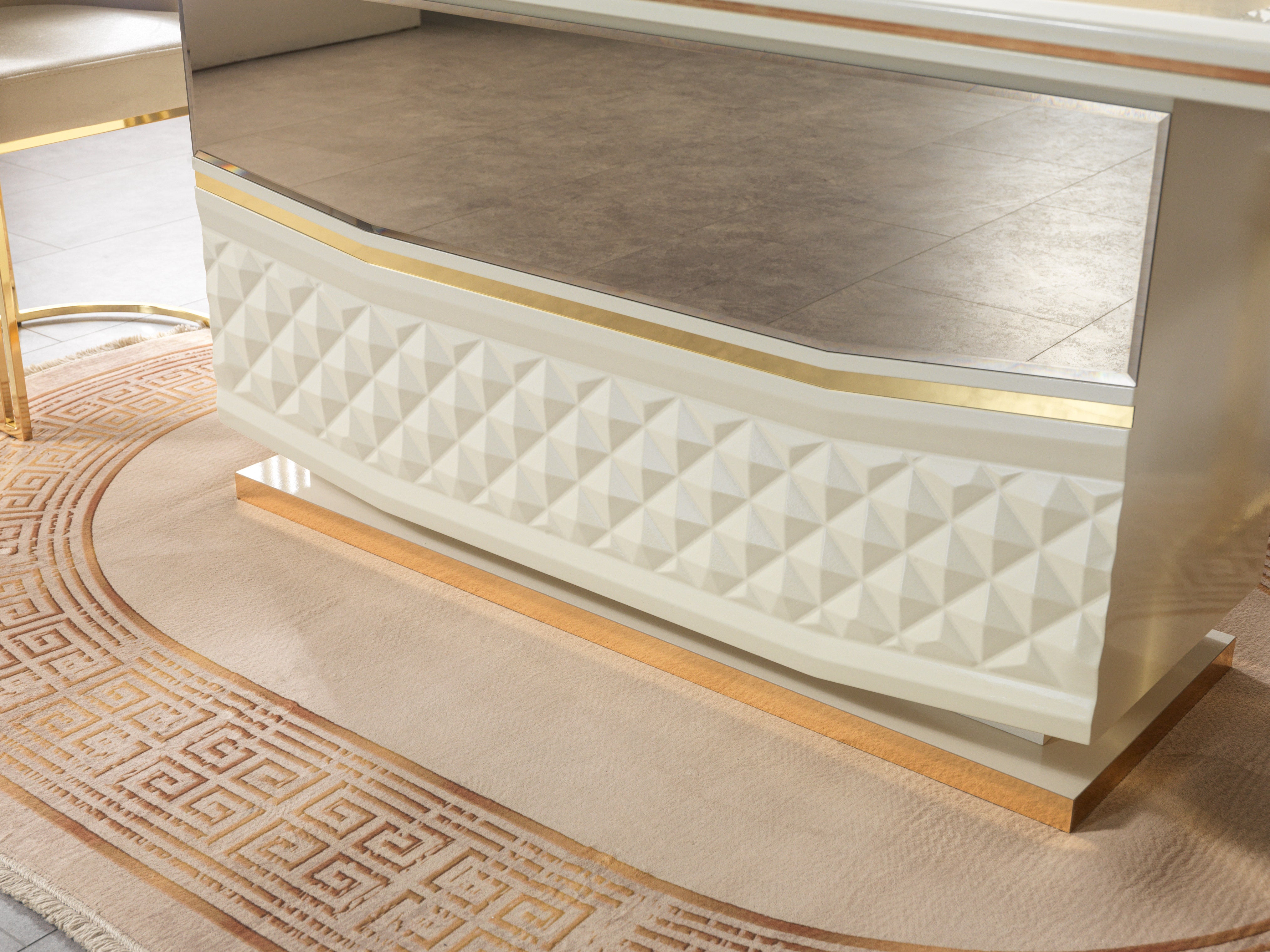 • ✔ Glossy ivory tabletop with gold trim for a modern luxe look
