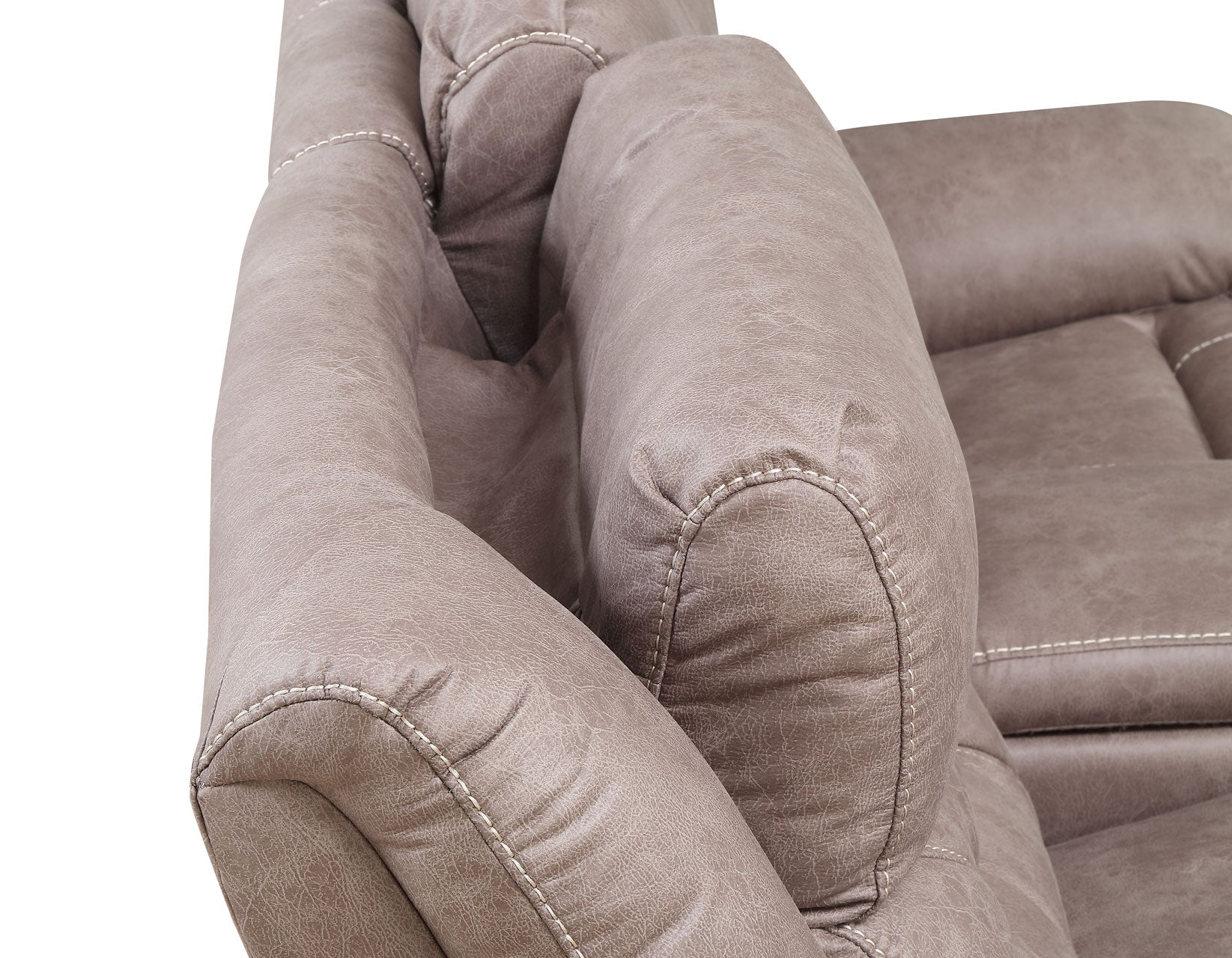 Aria presents power reclining with all the bells and whistles. Buttery soft fabric covers an advanced seating system with 49 pocketed coils in each seat and a lay-flat reclining mechanism. Power articulating headrest and power footrest features are paired with a USB recharging station and storage for the ultimate in comfort and function.
