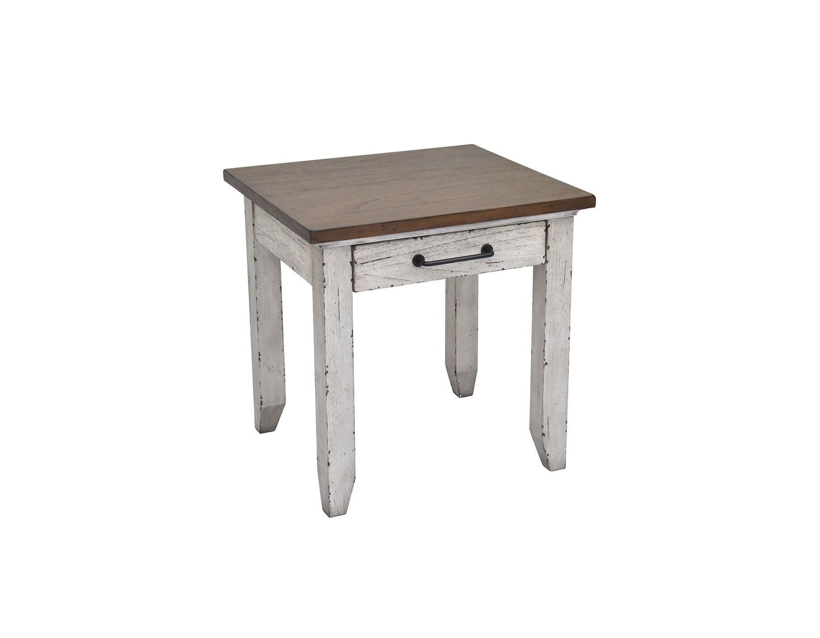 Perfect for your farmhouse inspired home, Bear Creek tables offer just the right mix of casual and rustic inspired designs to blend with today’s decorating environments. The two-tone combination of white and honey smoke finish works well with any casual upholstery setting and features distressing that makes the tables look like vintage heirlooms in any room.