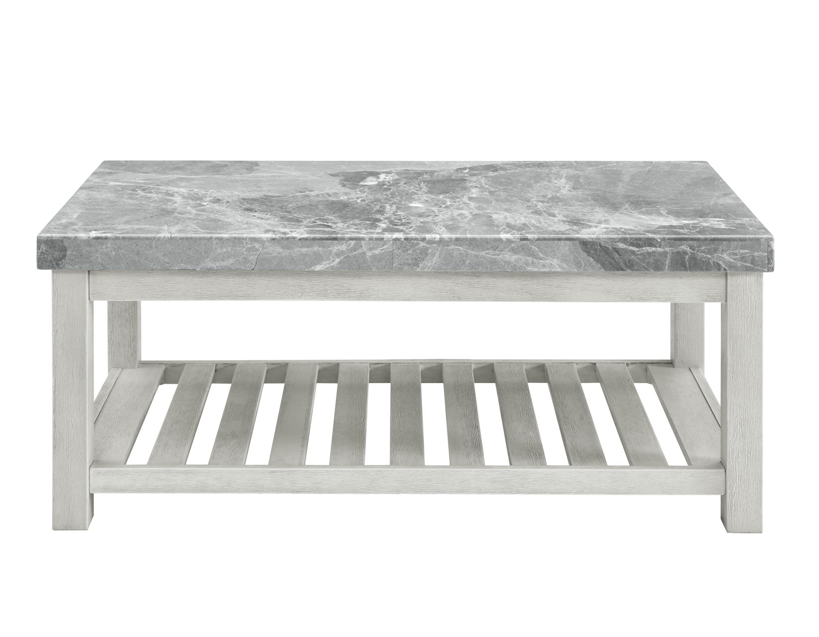 A light and airy table set to any living area, Canova offers the elegance of a marble top table in a more relaxed presentation. A gray marble top veneered offers a subtle contrast to the substantial legs and slotted shelfs of the tables in a streamlined look that creates a bold profile that accents a room. The Cathedral White finish over Ash Veneers and Poplar solids create a neutral but not demure aesthetic that is perfect for Coastal, Farmhouse, Transitional or just open and airy interiors.