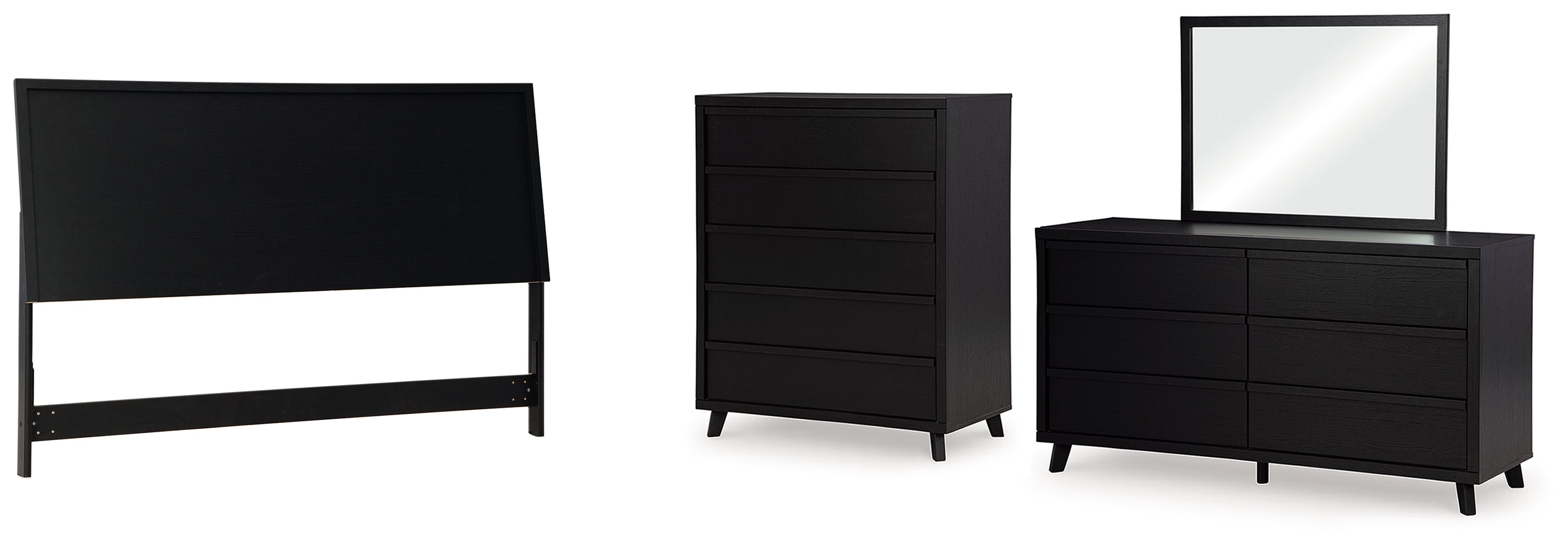 Danziar King Panel Headboard with Mirrored Dresser and Chest in Black