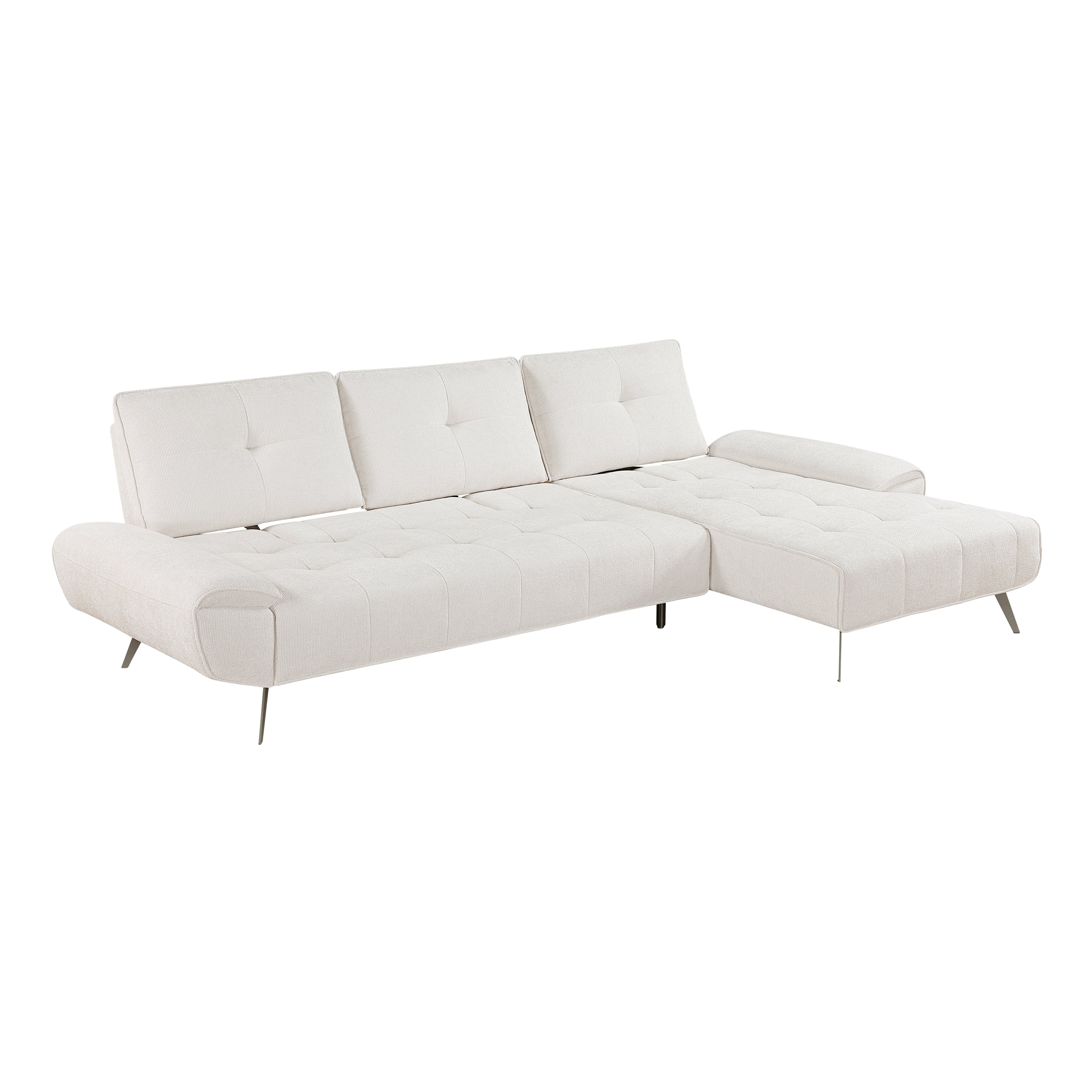 Elevate your living space with the sleek and versatile design of this modern 2-piece sectional. Upholstered in a soft beige chenille, this sectional adds a touch of contemporary comfort to any room. The right-facing chaise offers a comfortable lounging option, while the innovative dual-position backs allow for adjustable seat depth, providing customizable comfort for everyone. The gunmetal finish metal legs add a touch of industrial chic and provide sturdy support. Perfect for apartments, condos, or modern homes, this sectional combines style, comfort, and functionality in one stunning piece.