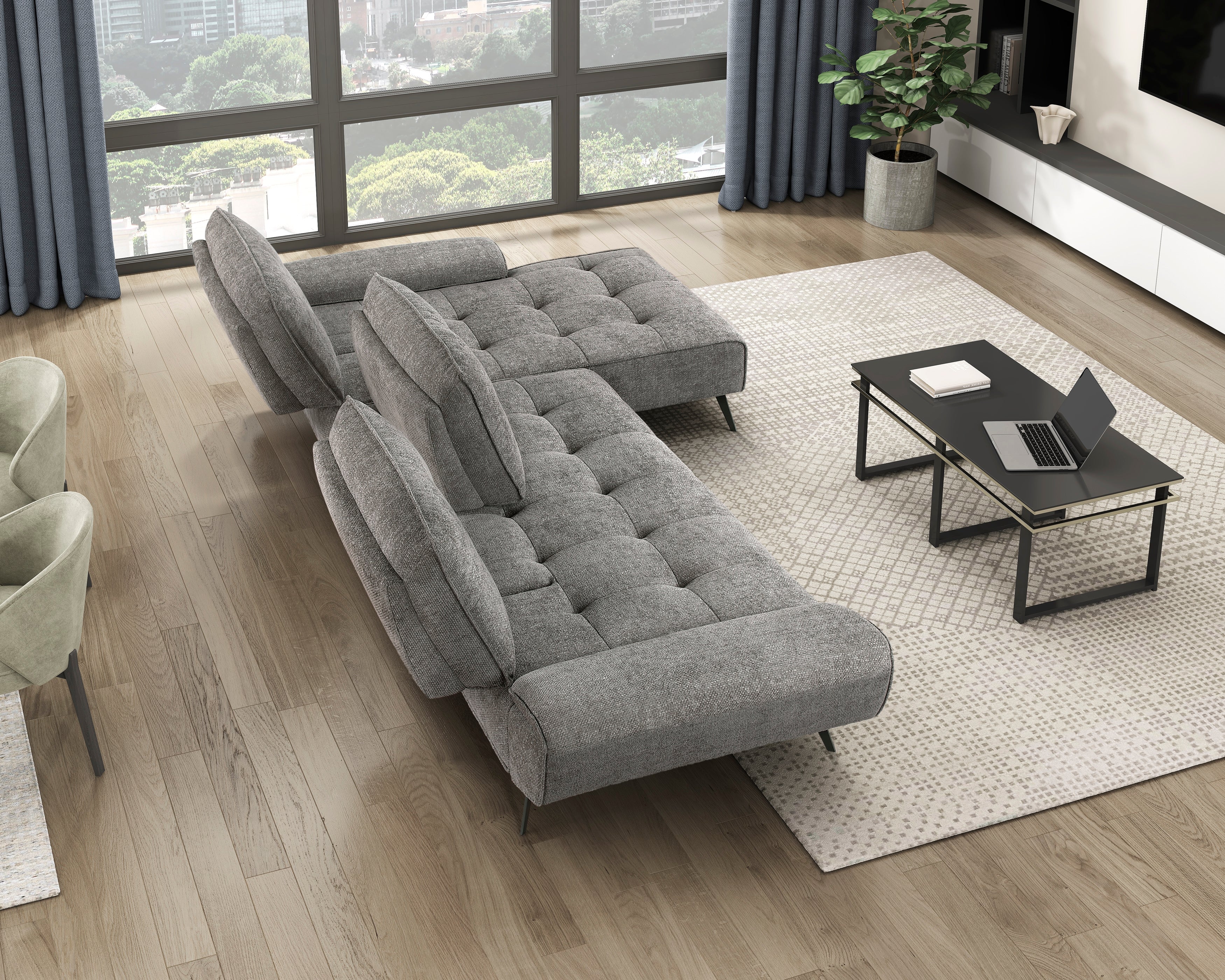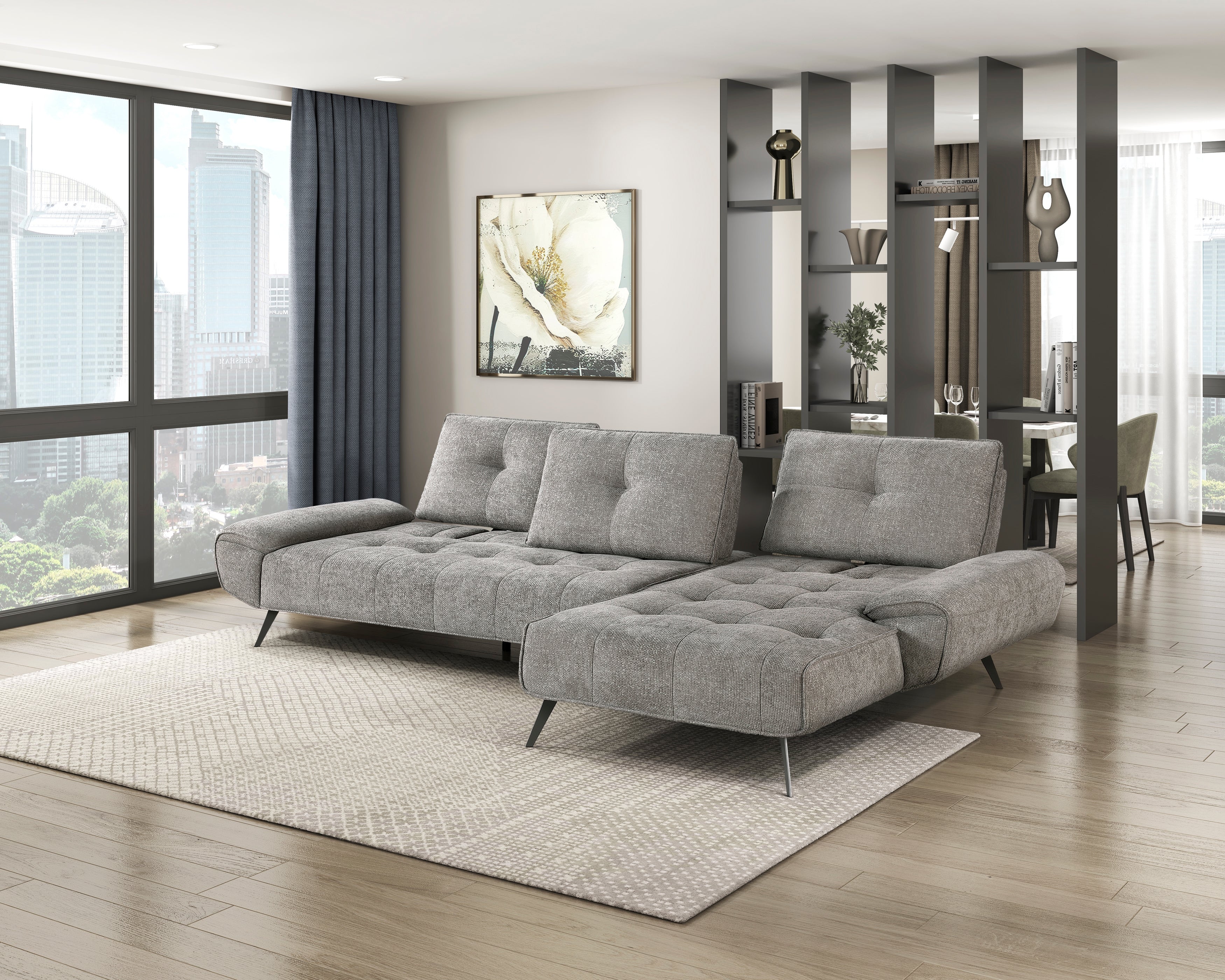 Elevate your living space with the contemporary design and customizable comfort of this modern 2-piece sectional. Upholstered in a stylish dove gray fabric, this sectional adds a touch of sophistication to any room. The right-facing chaise provides a comfortable lounging option, while the innovative dual-position backs allow for adjustable seat depth, ensuring optimal comfort for everyone. The sleek gunmetal finish metal legs add a touch of industrial chic and provide sturdy support. Perfect for apartments, condos, or modern homes, this sectional combines style, comfort, and functionality in one stunning piece.