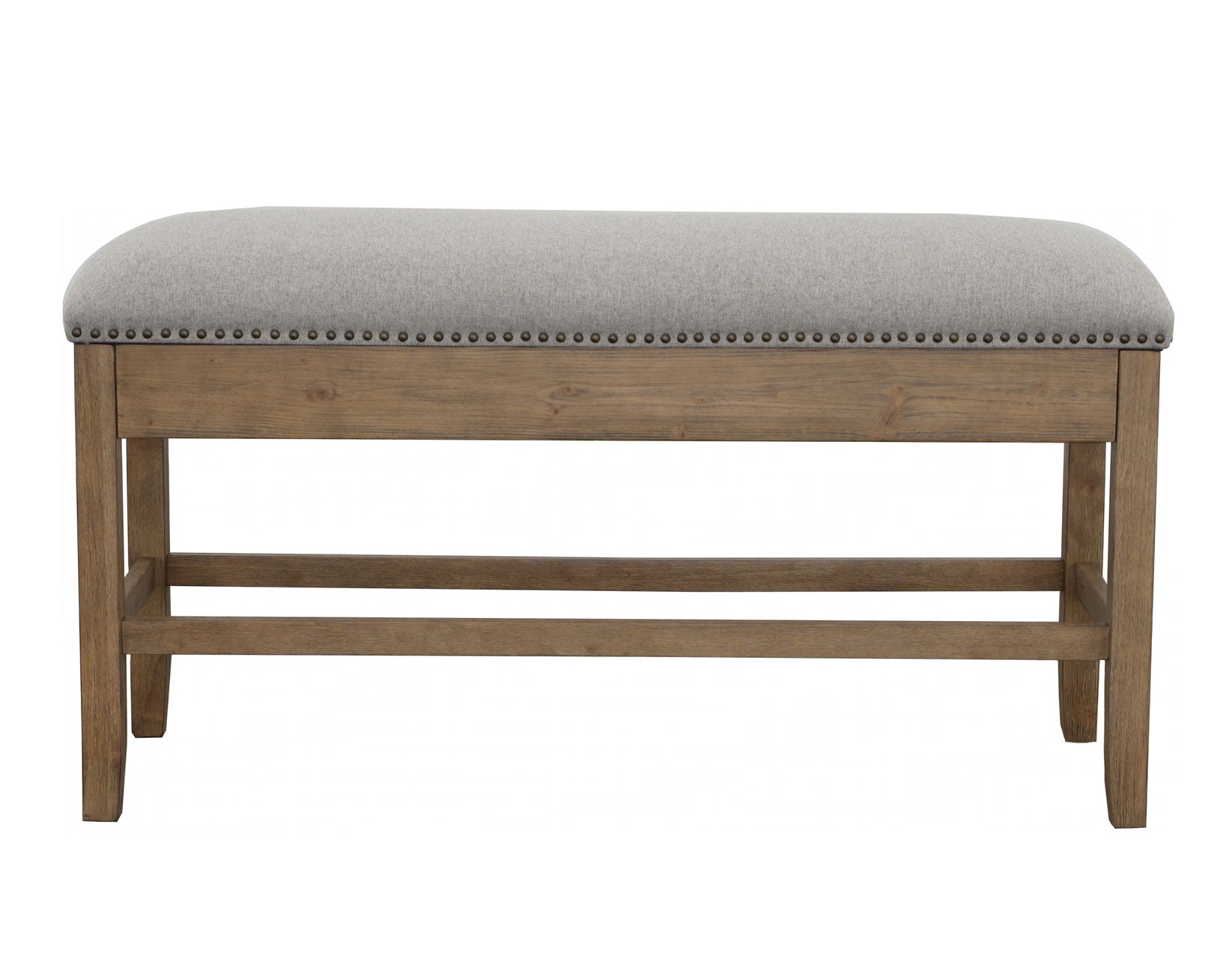 Introduce a touch of rustic charm and practical storage to your home with the Grayson Counter Bench. The 24″ seat height fits comfortably with 36″ height counters offering a beautiful accent to any gathering. A hand crafted smoky honey finish and nailhead trim combine with 100% polyester gray fabric cover to create a look of understated elegance that complements any decor style. Concealed lift-top storage ensures your belongings are always hidden but close by.. Comfortable seating, great style and convenient storage all in one stylish package.