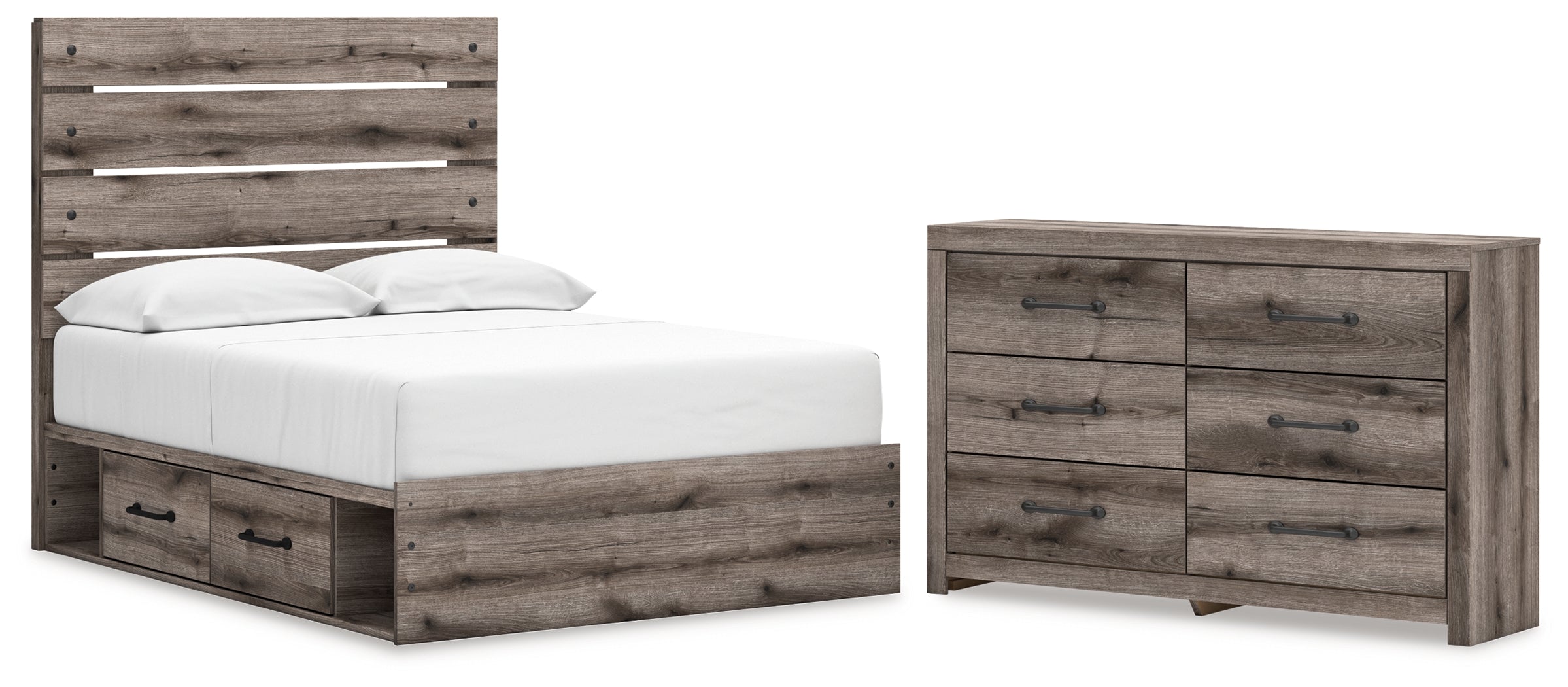 Graystorm Full Panel Bed with Storage with Dresser in Brown Gray