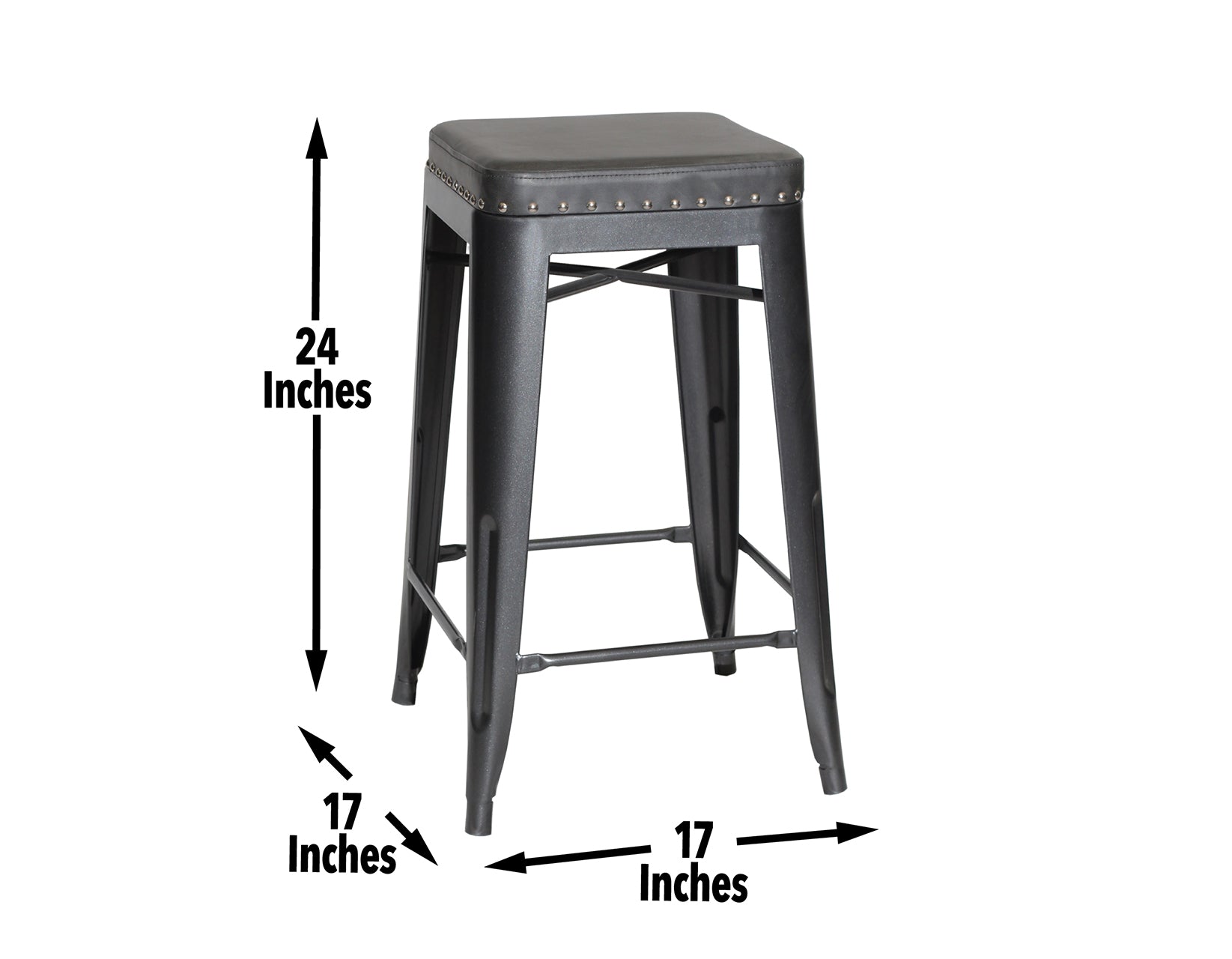 Sleek style in a compact design is the hallmark of this Backless Counter Stool that fits 36-Inch high counters. An upholstered granite leatherette seat ensures a comfortable seat while details like nickel nailhead and box seat construction make sure the stool stands out! A great addition to industrial, farmhouse or transitional interiors, the fully welded steel frame makes for a sturdy, durable stool that requires no assembly.