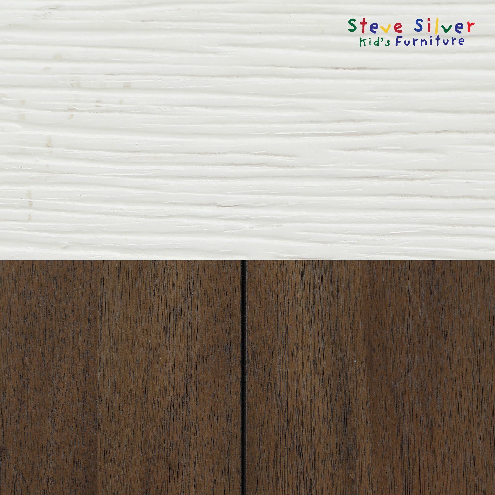 Hand-applied mocha and ivory finish showcases the natural beauty of the wood grain and knots, bringing warmth and organic elegance to a kid-friendly size.