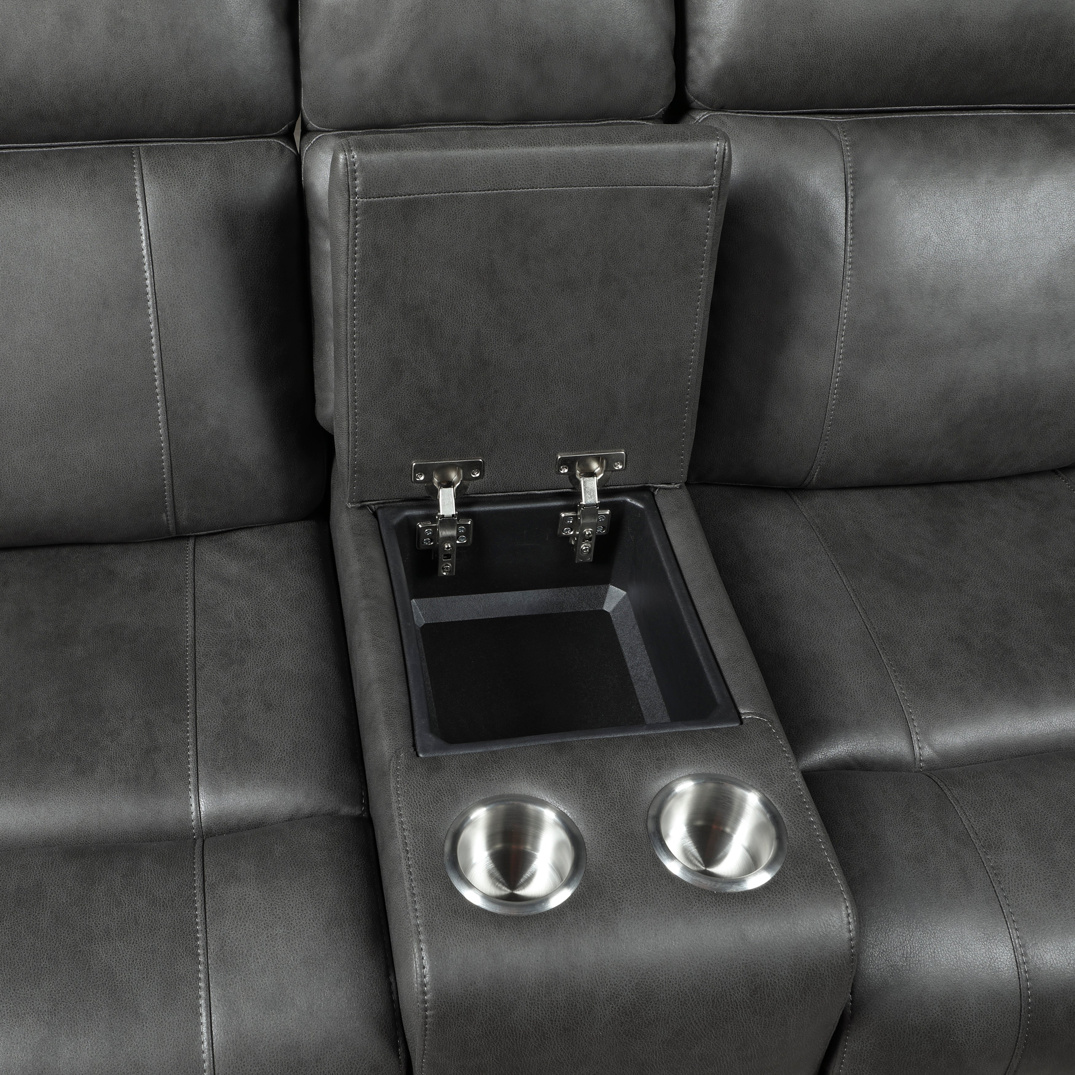 Experience the pinnacle of modern comfort and convenience with this collection of power reclining furniture. Each piece, including the power recliner, power double reclining loveseat with console, and power double reclining sofa, is upholstered in a sleek, polished microfiber enhanced by elegant nailhead trim. Effortlessly adjust to your preferred reclining position with one-touch power controls and stay connected with integrated USB charging ports. Enjoy exceptional support from dacron-wrapped high-density foam cushions atop durable solid wood and plywood frames with metal-reinforced seating. The loveseat offers added convenience with a center storage console and cup holders. With their clean lines and modern amenities, these pieces provide the ultimate in contemporary relaxation for any living space.