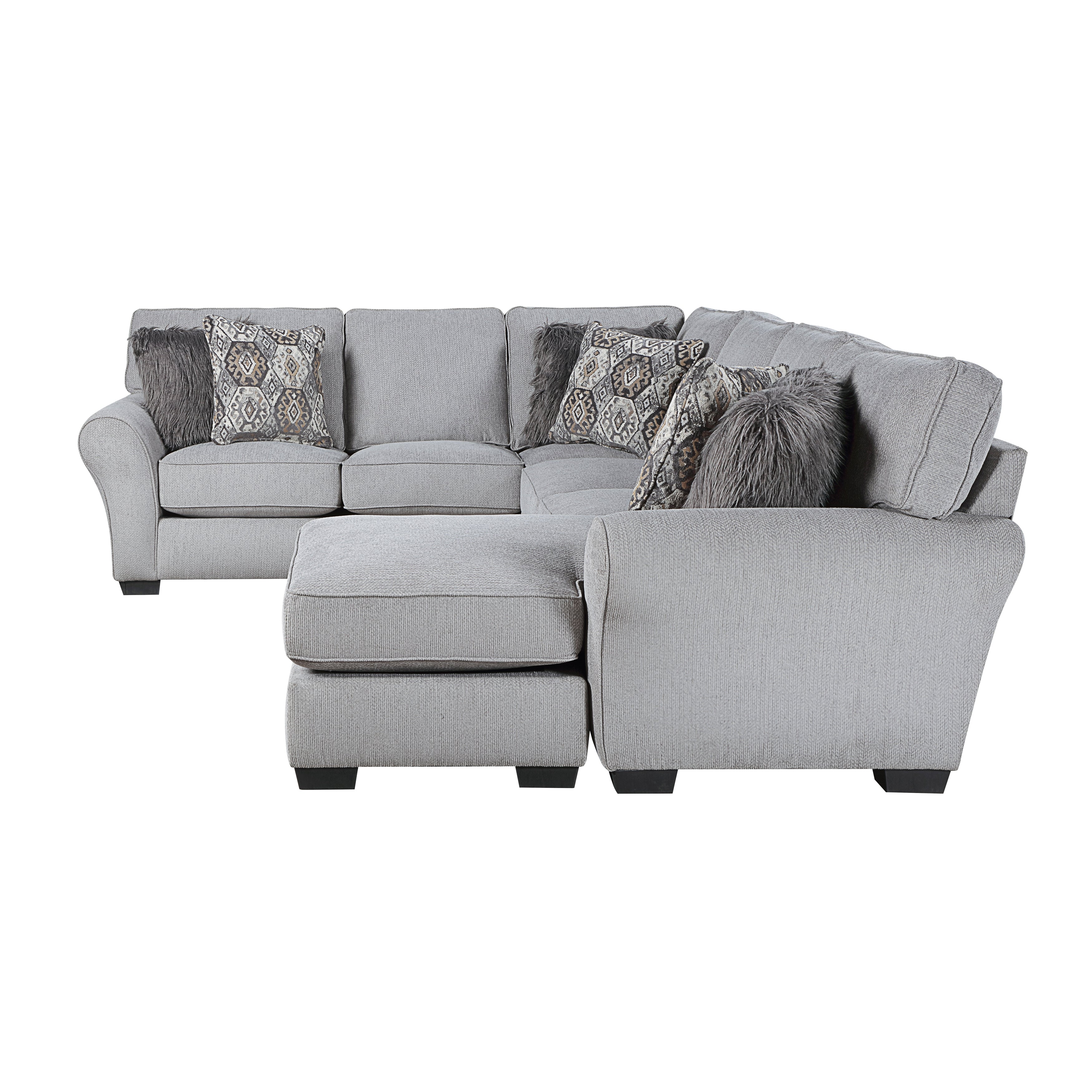 The transitional profile of the Kieran Collection is paired with a hint of modern flair to create a unique addition to your home’s living room. Gray chenille upholstery covers the sectional with both neutral patterned fabric, and graphite-hued faux fur accent toss pillows, adding a touch of whimsy. The corner sofa segment pairs with a three-seat sofa chaise to create the ample seating arrangement of the Kieran Collection.