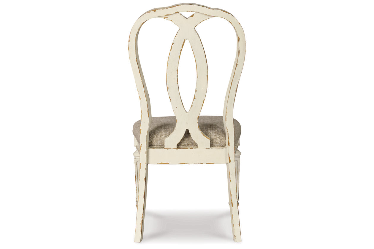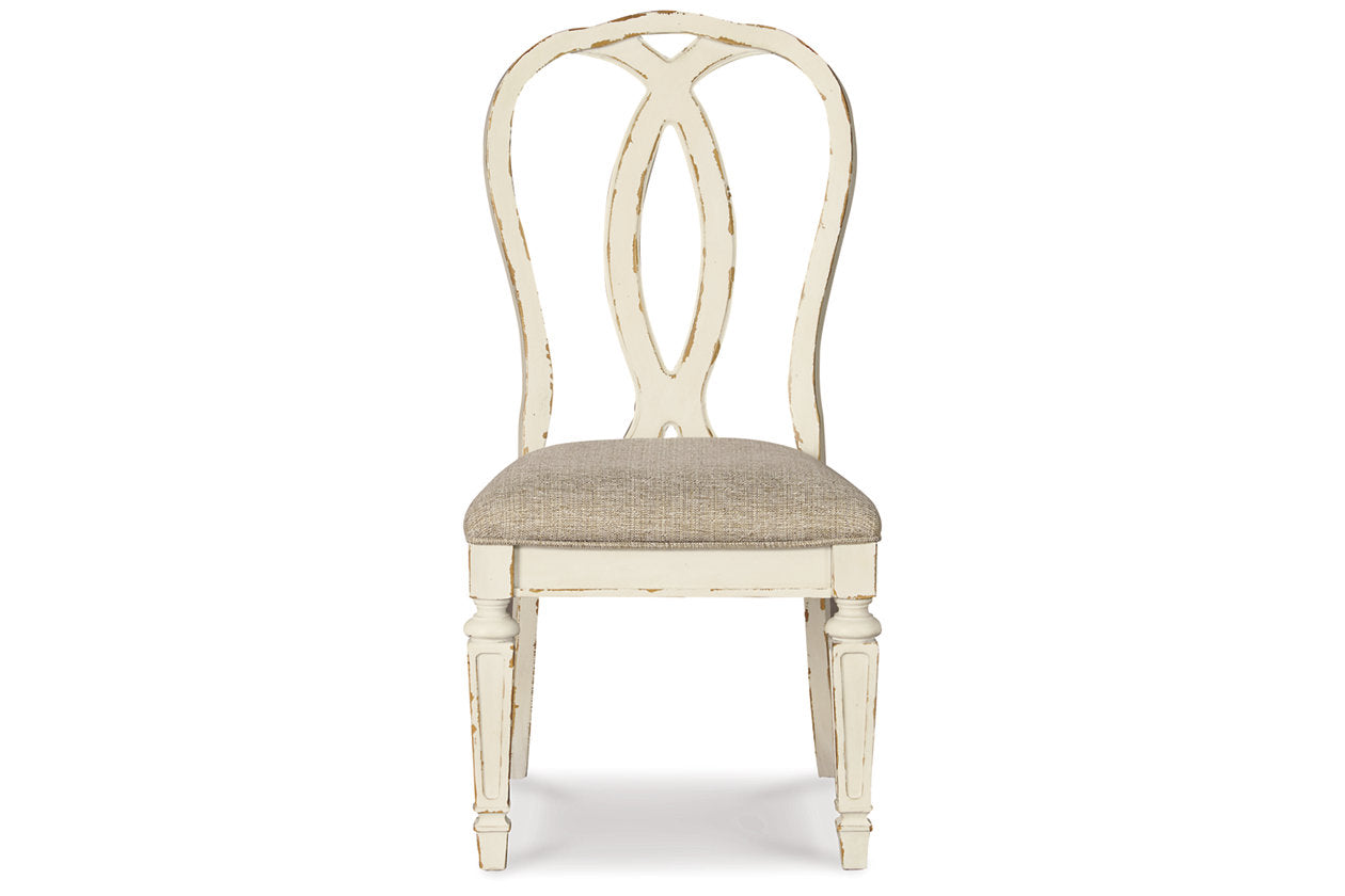 Bon appétit. This dining package has all the right ingredients for a French country-inspired feast for the eyes. Enhance your dining area and serve up a place for casually cool entertaining. Its antiqued two-tone aesthetic pairs a chipped white with distressed wood finished top and for twice the charm. Plushly cushioned seats are covered in textured oatmeal-tone fabric. Luna Furniture introduces Realyn Dining Table and 8 Chairs to enhance the beauty of your living spaces.