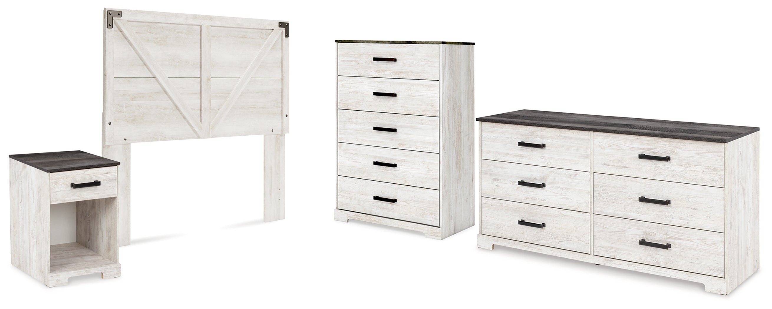 Shawburn Queen Panel Headboard with Dresser, Chest and Nightstand in Whitewash