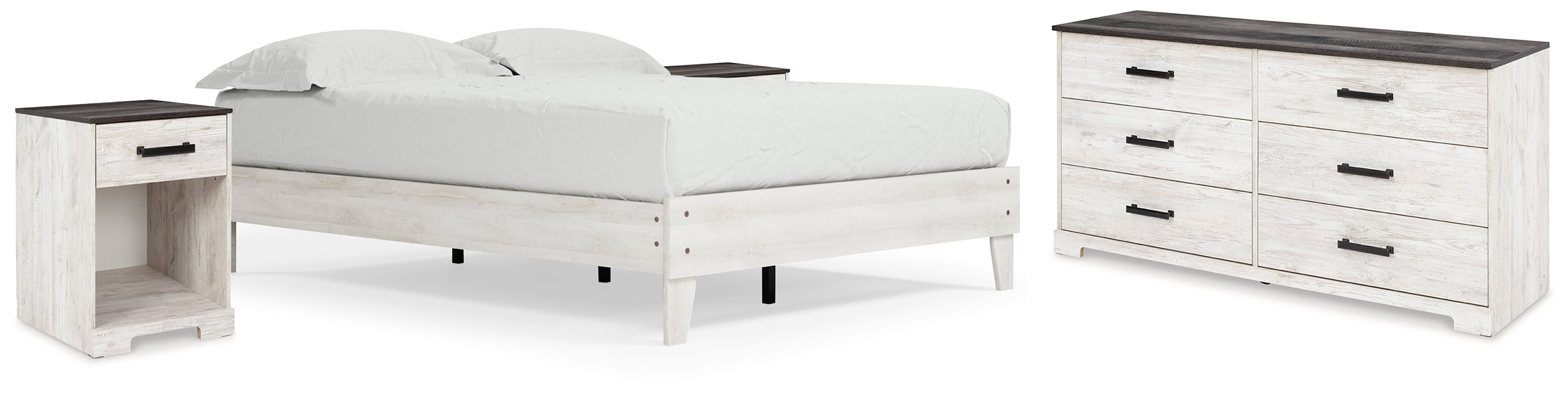 Shawburn Queen Platform Bed with Dresser and 2 Nightstands in Whitewash