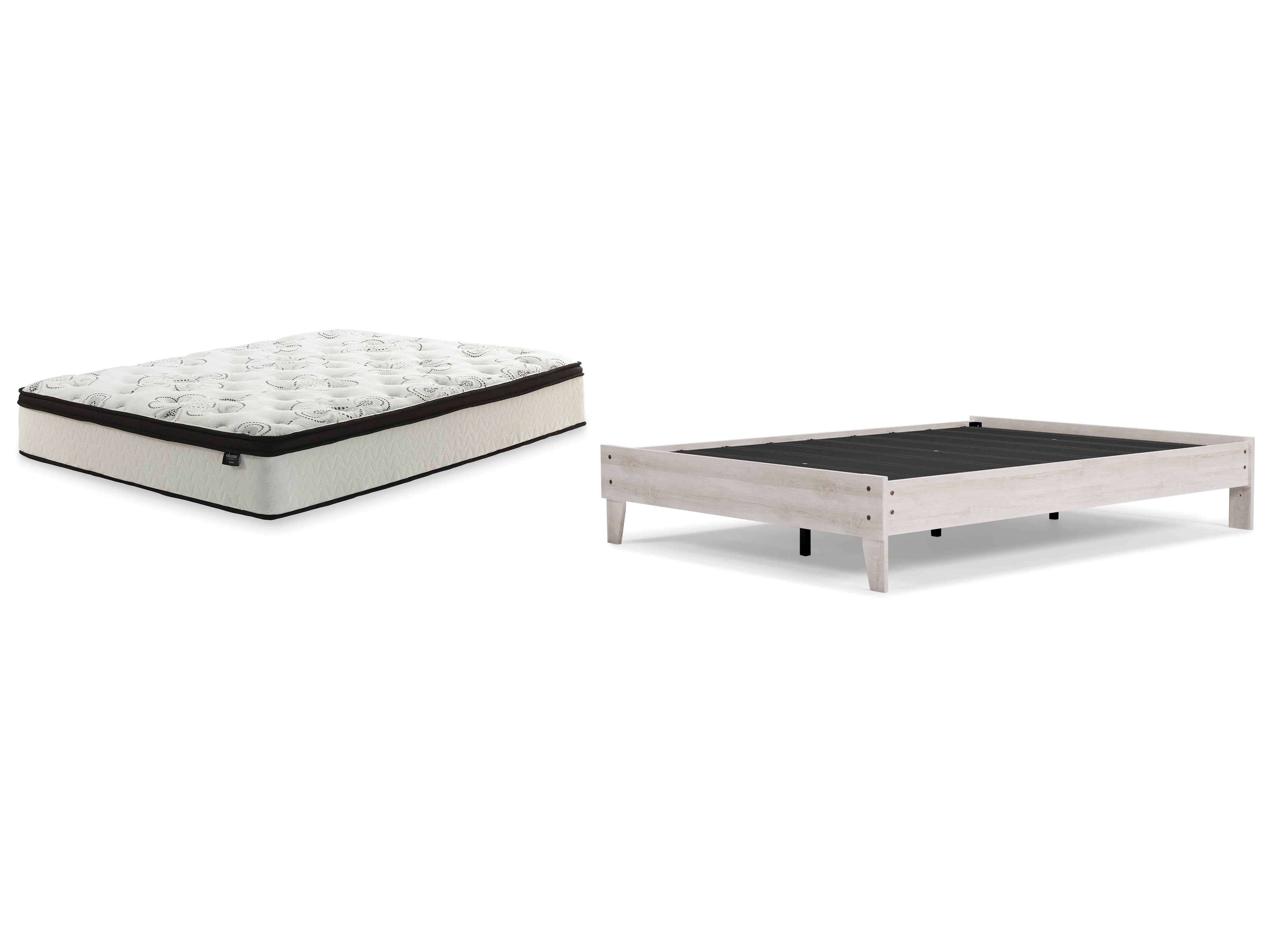 Shawburn Queen Platform Bed with Mattress in Whitewash