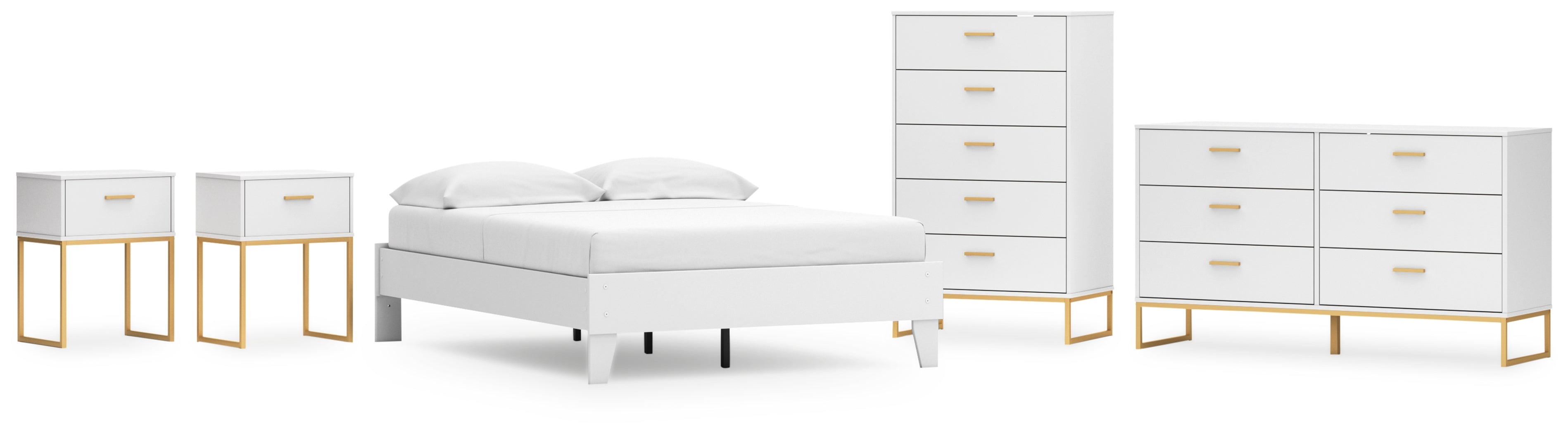 Socalle Full Platform Bed with Dresser, Chest and 2 Nightstands in Two-tone