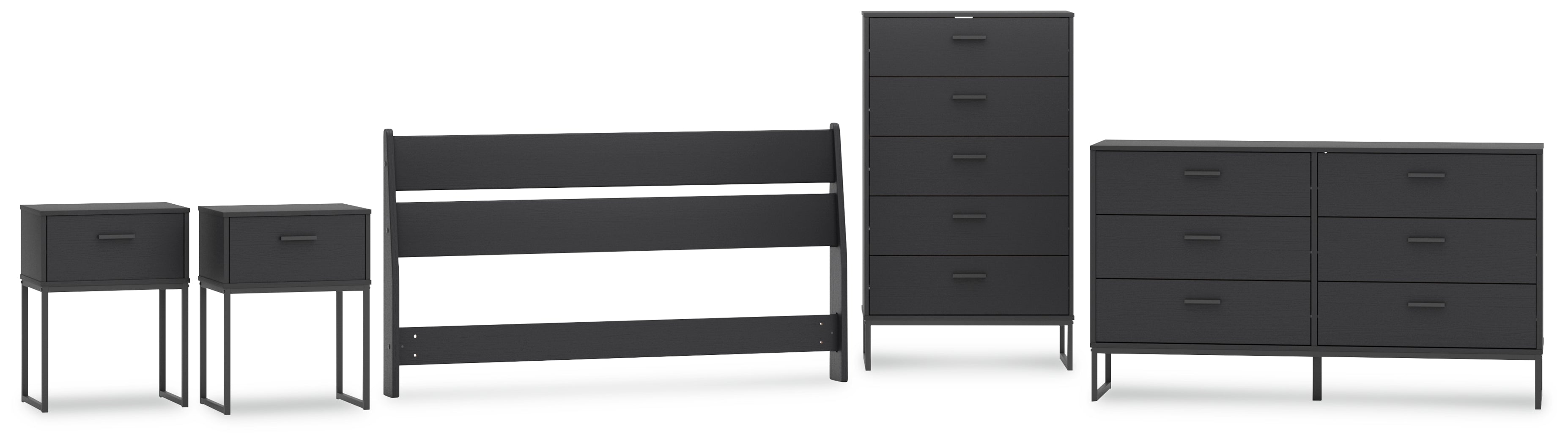 Socalle Queen Panel Headboard with Dresser, Chest and 2 Nightstands in Black