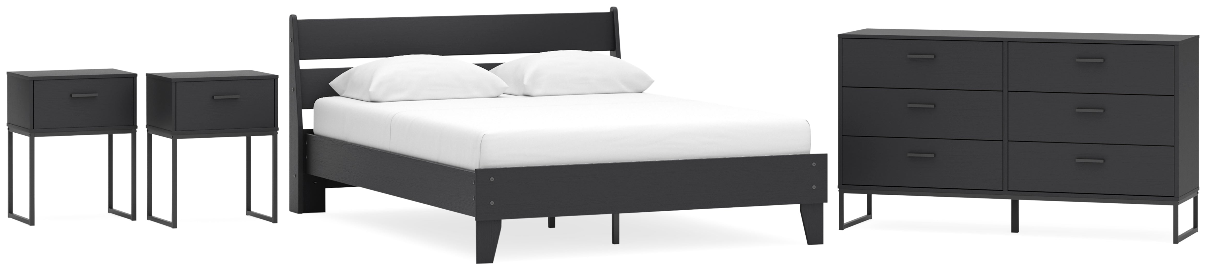 Socalle Queen Panel Platform Bed with Dresser and 2 Nightstands in Black