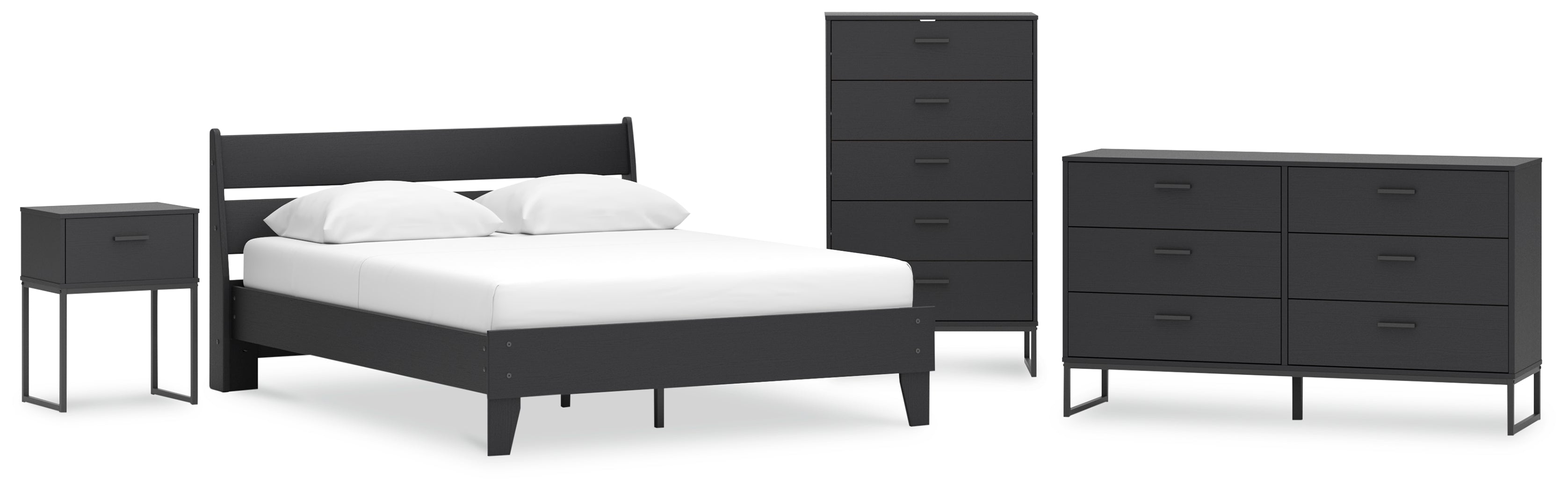 Socalle Queen Panel Platform Bed with Dresser, Chest and Nightstand in Black