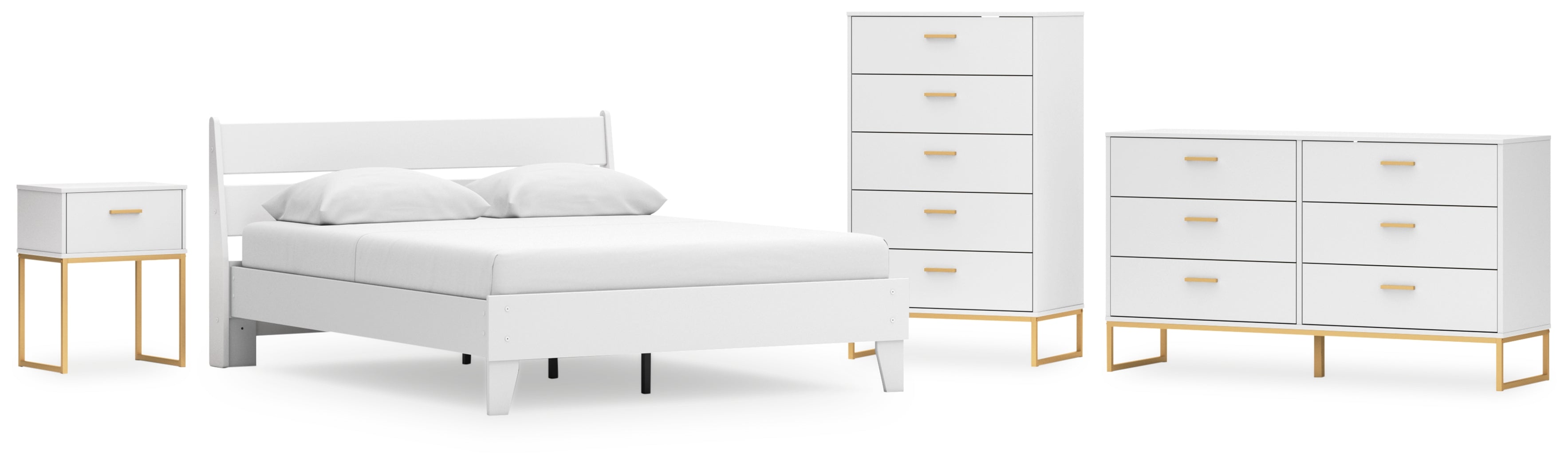Light and bright, this bedroom package is inspired by chic design. A matte white finish and goldtone accents offer an elegant touch to this so-cool set. It beautifully blends the hues of natural living with the edginess of your modern lifestyle.