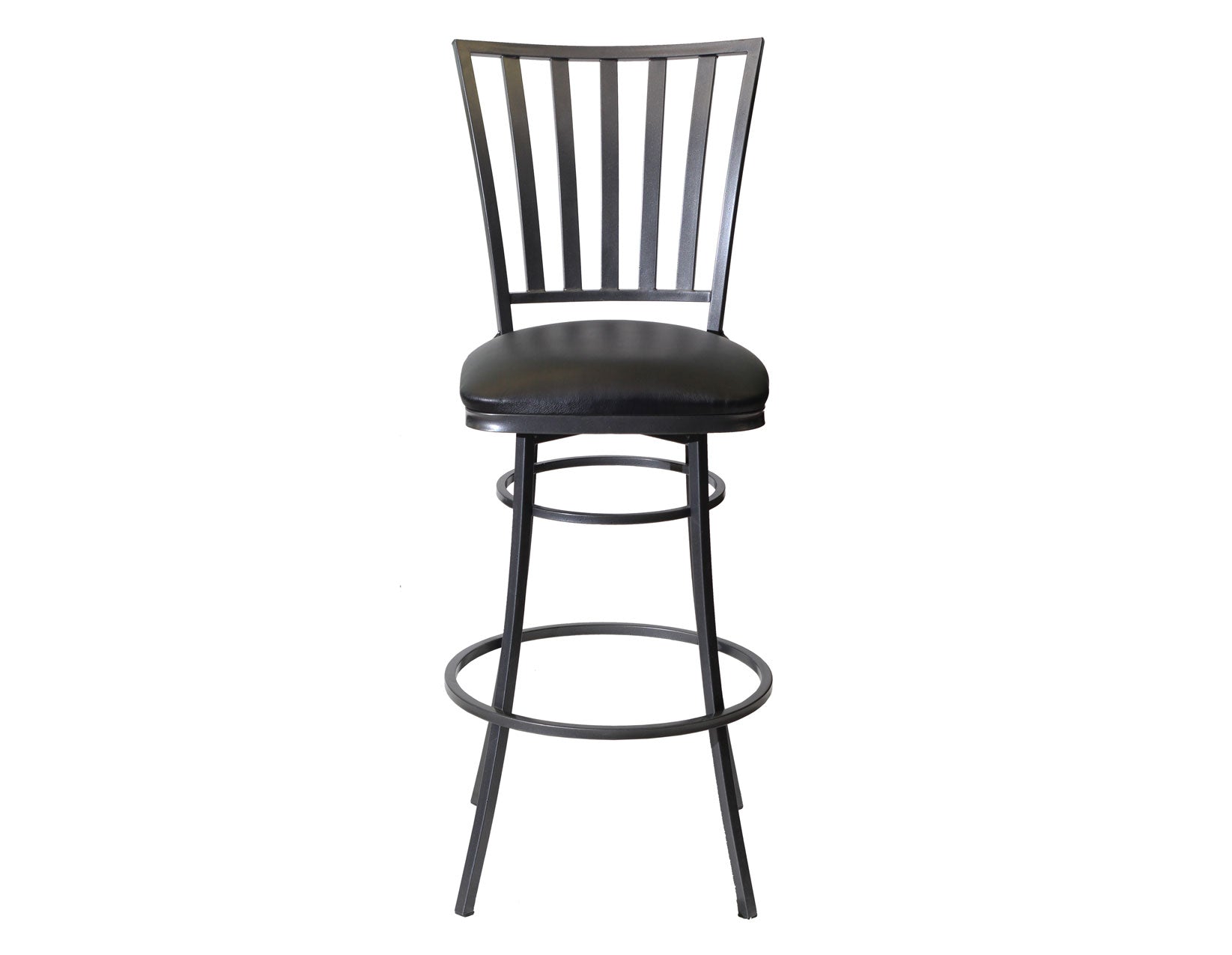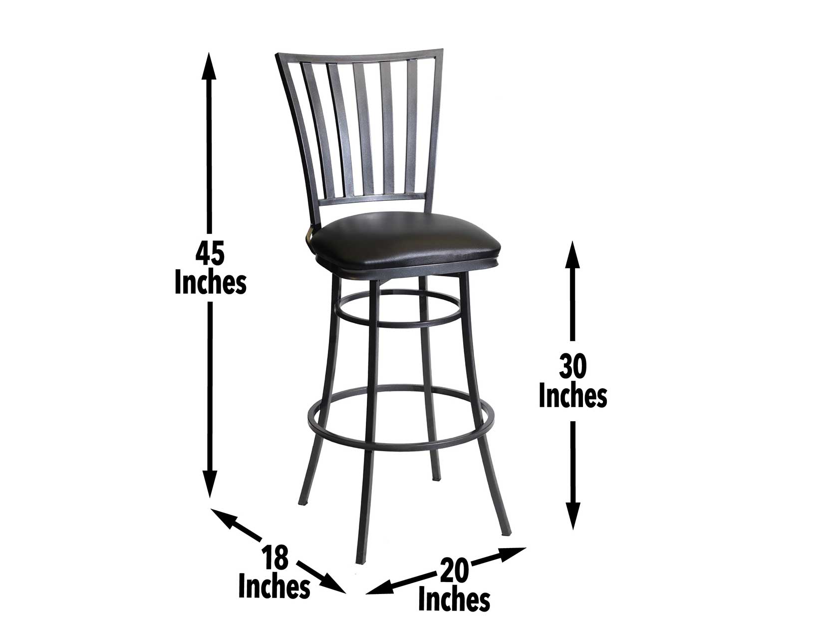 Comfort, style and durability in a Commercial Grade strength Bar Stool, Stellan adds some mixed media style to any counter area. A sleek powder-coated gunmetal finish mixes beautifully with the midnight leatherette seat that looks great and is comfortable. The full 360 degree swivel seat makes entrance and exit easy as well as enjoyable. This 30″ seat high chair works with any 42″ counter including  Bar counters.