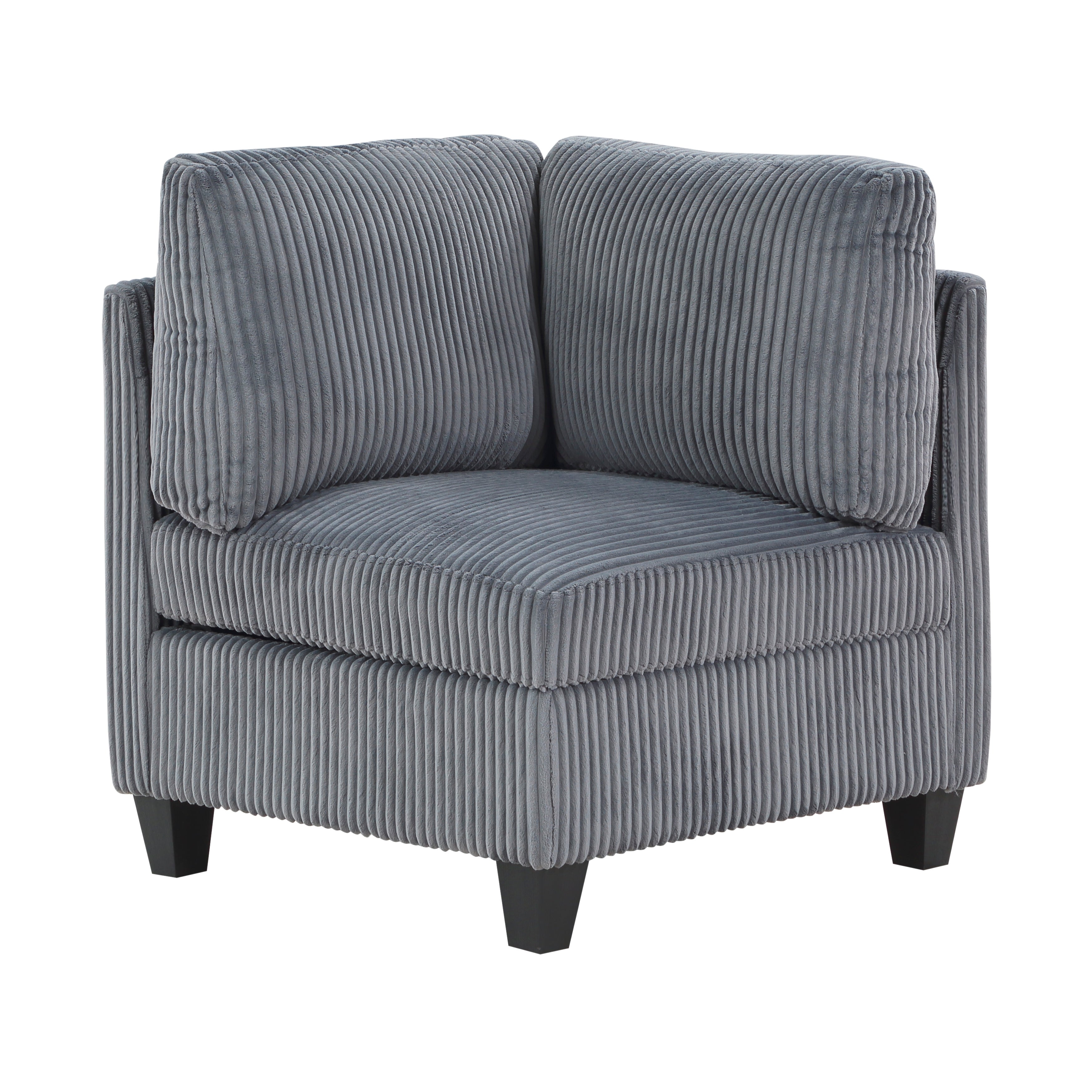 The Walterboro Collection features a highly versatile modular design that allows you to customize your seating arrangement to fit your space and lifestyle. With components such as sofas, loveseats, armless chairs, corner units, and end seats, you can create anything from a compact two-piece setup to an expansive multi-sectional layout. Hidden storage drawers are built into the armless chairs and end units, offering convenient organization with easy access through the front loop handles. The end seats also include built-in charging ports, providing added comfort and functionality for everyday use. Upholstered in a soft dark gray corduroy fabric, the collection brings a modern, neutral look that blends seamlessly with a wide range of home décor styles.
