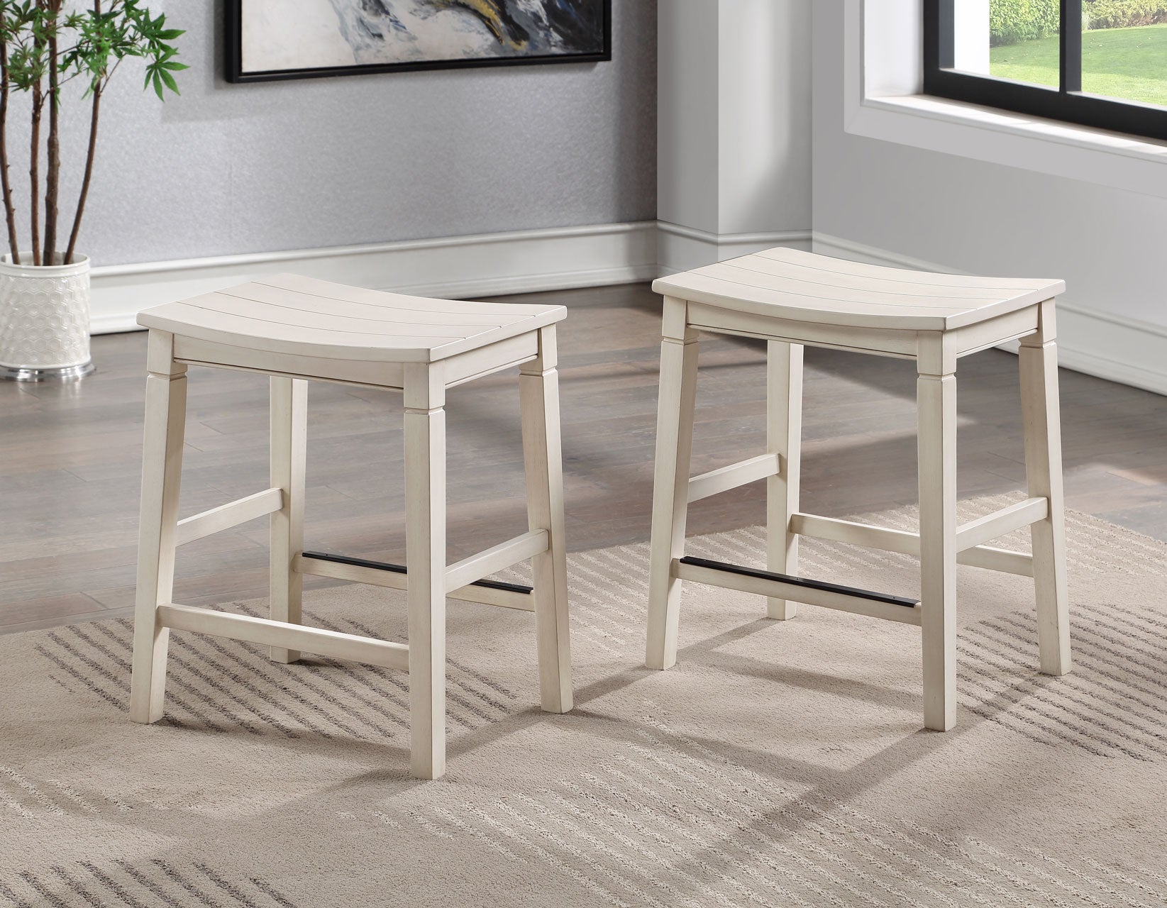 • Metal kickplate on Counter Stool reduces wear and tear on stretchers