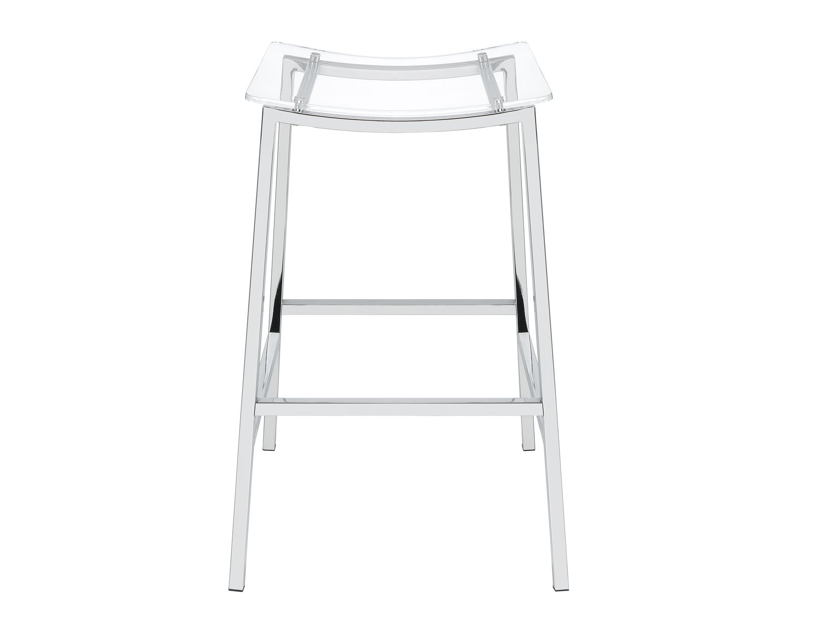 The Zena 29-inch Backless Bar Stool offers a seamless blend of style and durability, perfectly suited for 42-inch tall counters. This stool is more than just a seating option; it’s a statement piece. Its sleek, curved acrylic seat stands out with its clear profile, adding a light and modern touch to any space while allowing the gleaming chrome base to shine. The stool’s solid iron base is not just about aesthetics; it’s a testament to strength and longevity. Reinforced by side stretchers and a robust front footrest, this stool promises stability and years of dependable use. Whether paired with the Zena Bar or placed at your kitchen counter, this bar stool is guaranteed to elevate the look of your space.