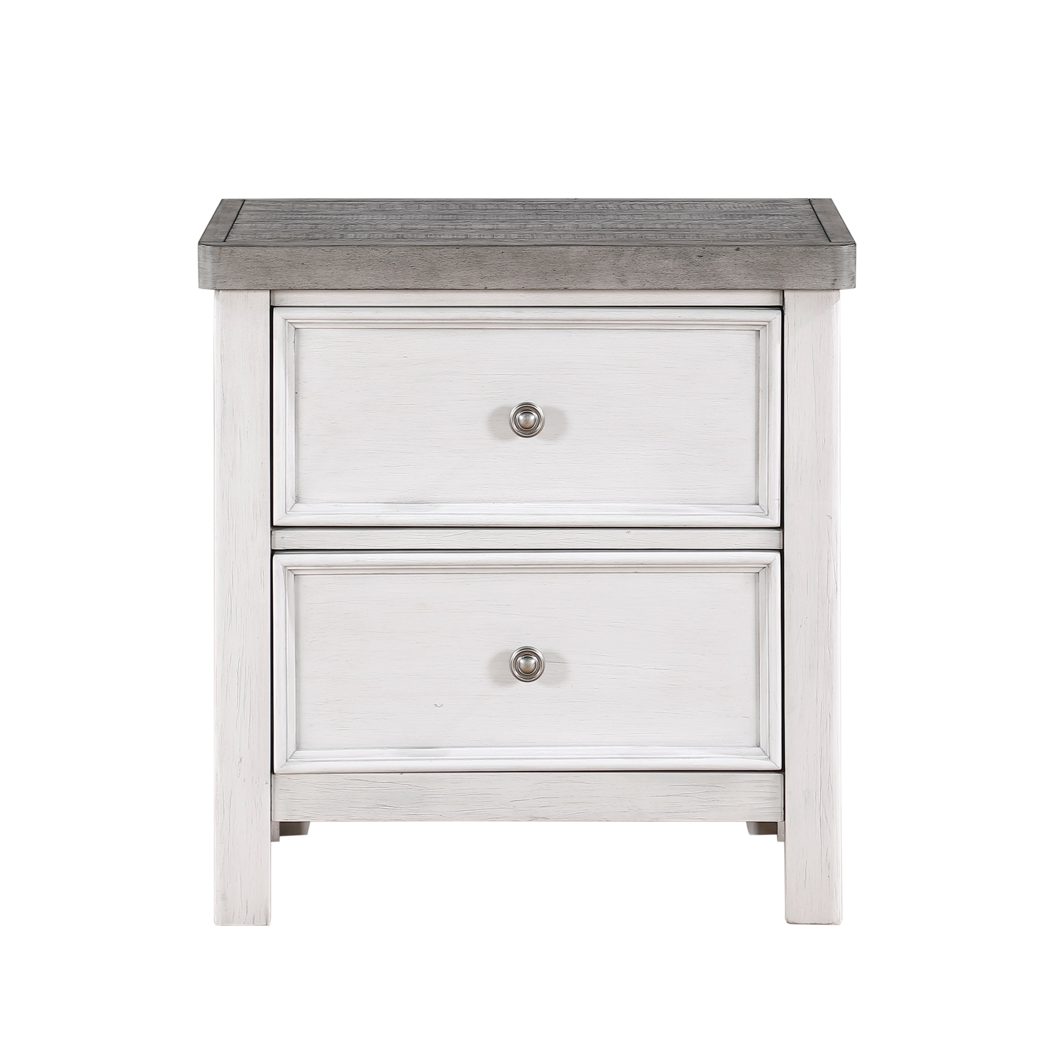 Ambrose Antique White/Gray 5-Piece Bedroom Set (Queen Bed, Nightstand, Dresser, Mirror, Chest)