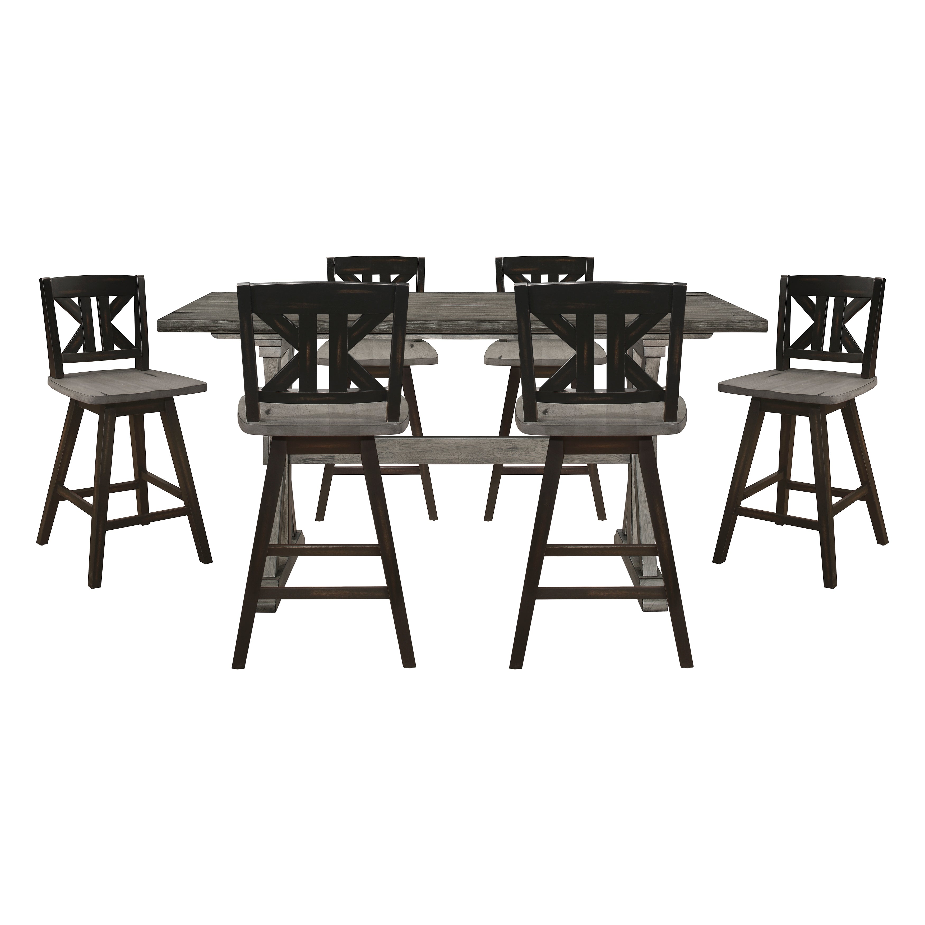 Amsonia Gray/Black 7-Piece Counter Height Set with Divided X-Back Swivel Chairs