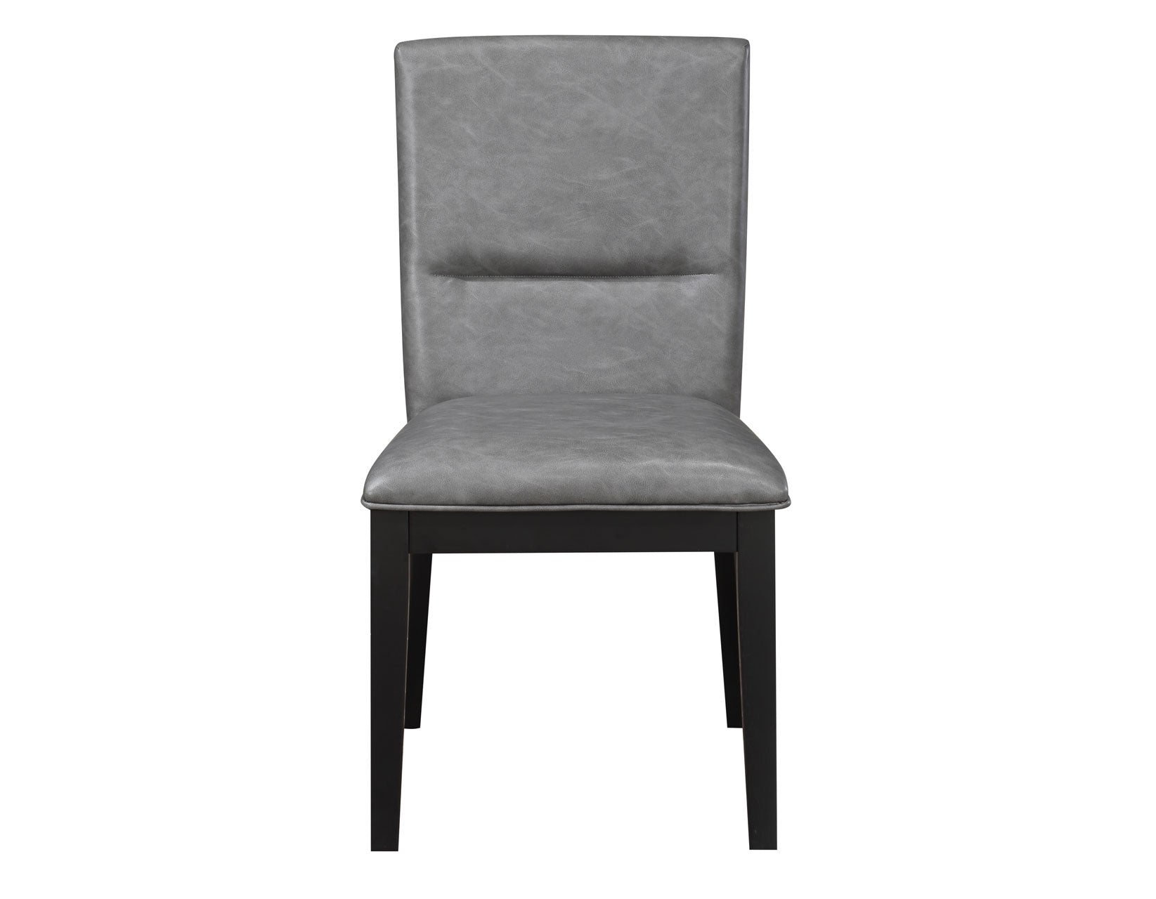 The Amy Side Chair brings a touch of mid century modern design to any dining setting. Upholstered in a moonlight gray faux-leather, this chair is built to last with corned blocked seat and solid wood legs. You will linger a little longer with the added comfort provided by the foam cushioning and memory foam topped seat while the ebony finished legs offer an elegant complement to the moonlight gray seat. Add to any setting for a sophisticated yet easy-to-maintain chair in a dining, office or living area.