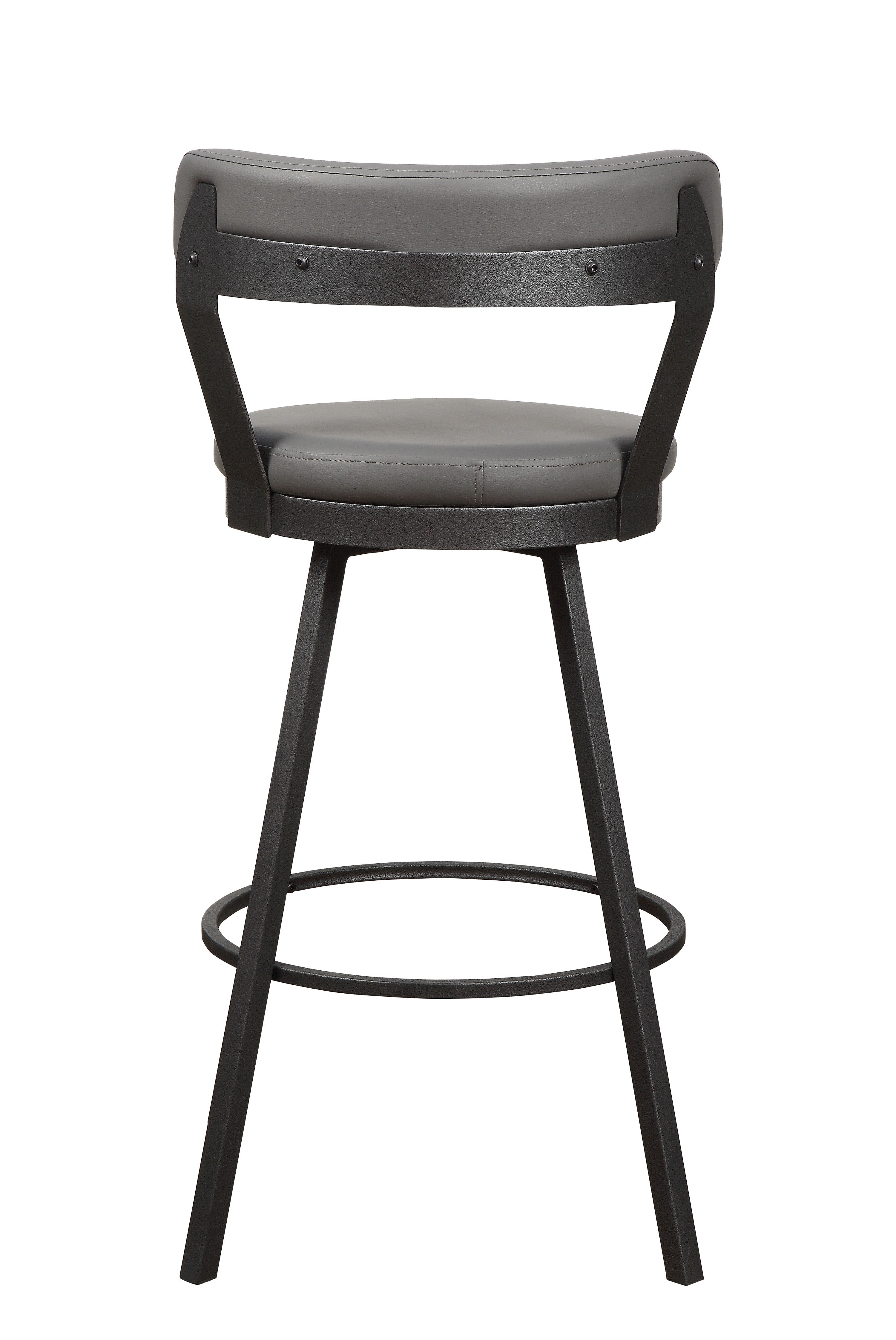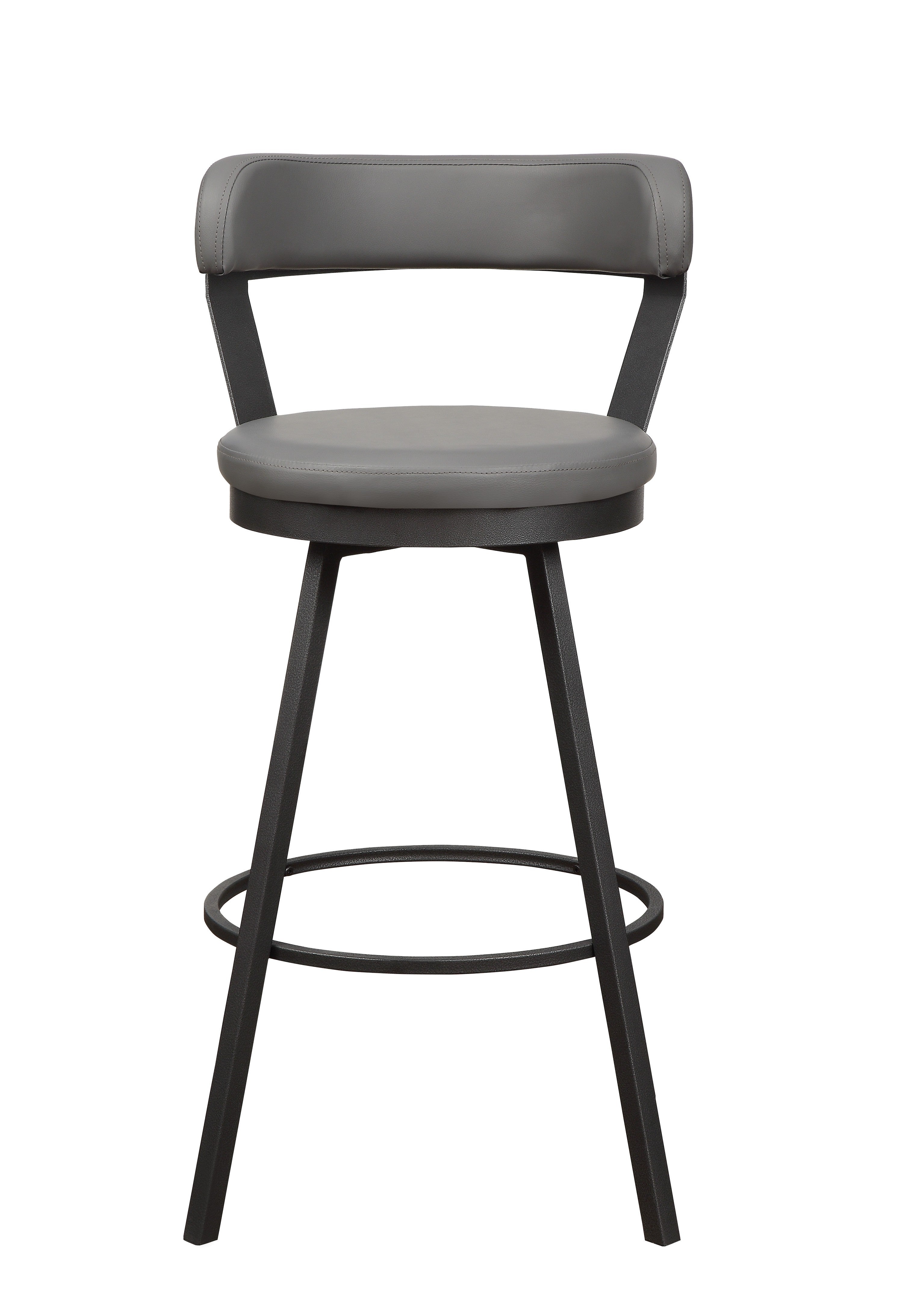 Perfectly styled for your casual dining space is the Appert Collection. This 29-inch pub height chair offering features a dark gray metal base that serves to support the gray faux leather round swivel seat. Allowing for perfect placement within your space, the Appert Collection is offered in a 24-inch counter height and 4 additional colors – brown, black, red and white.