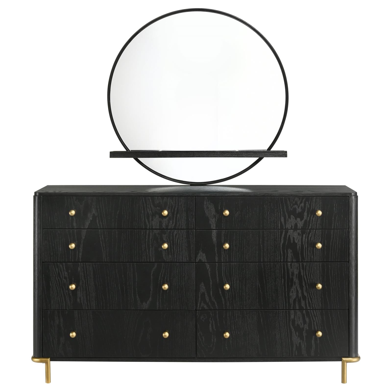 Arini Black 8-Drawer Bedroom Dresser with Mirror
