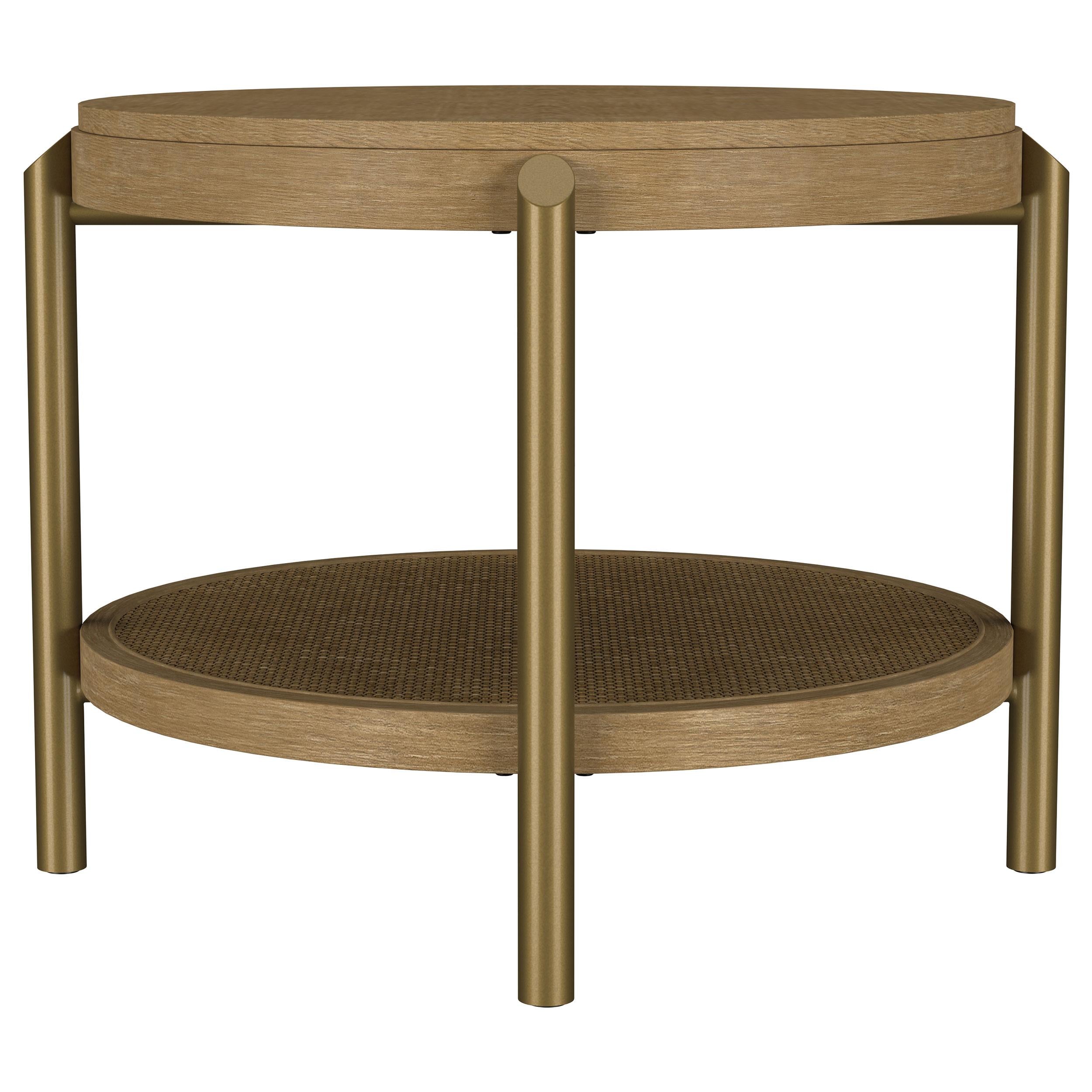 Arini Sand Wash Round End Side Table With Storage Shelf