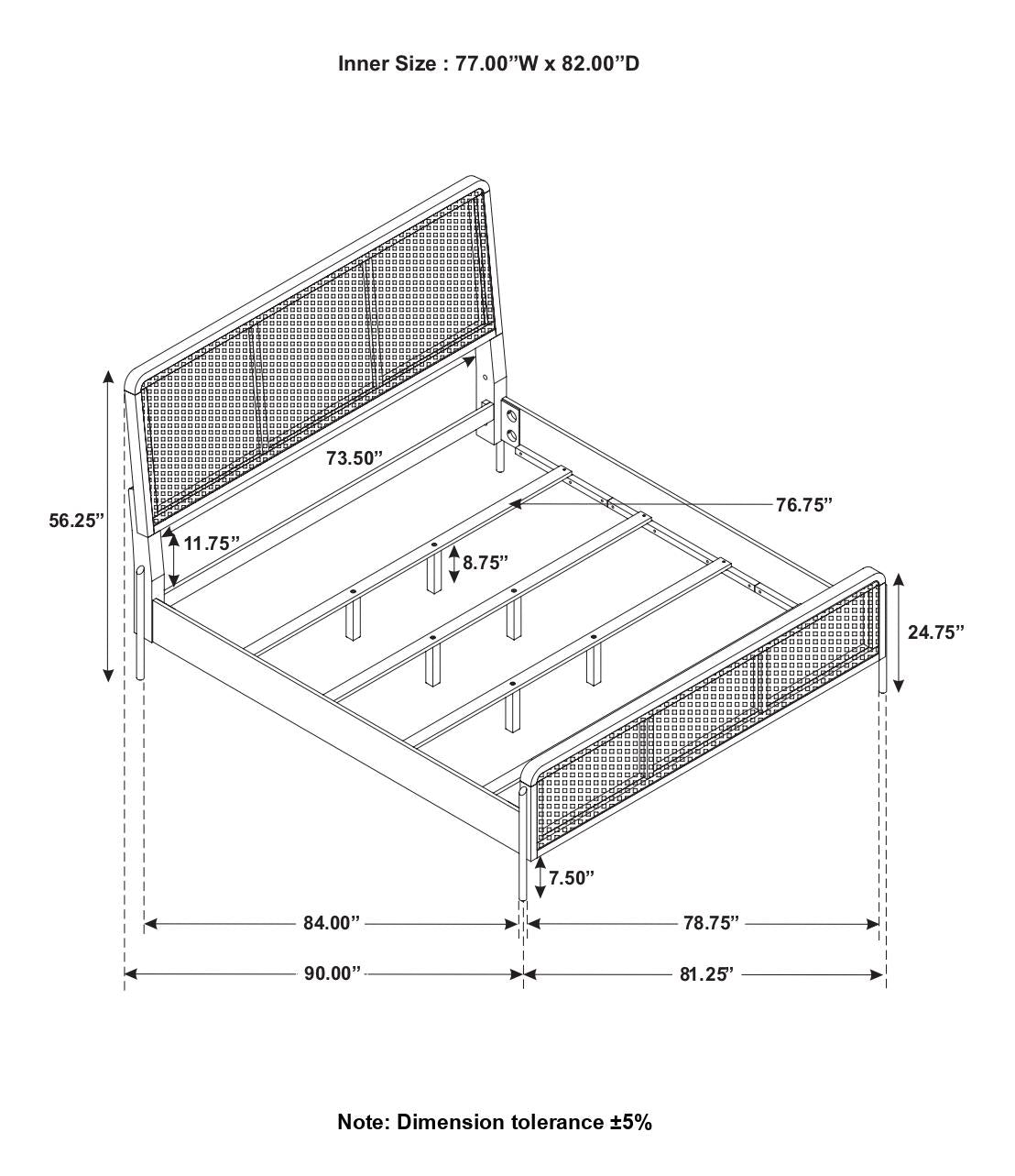 Arini Sand Wash and Natural Cane Upholstered Eastern King Panel Bed
