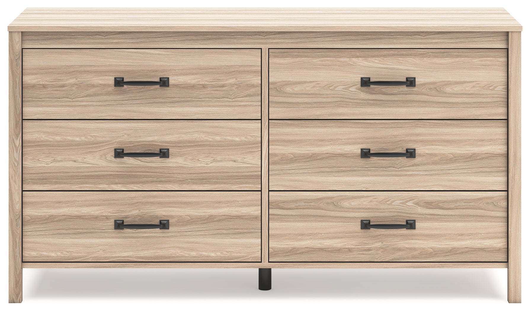 Transform your bedroom into an instant sanctuary. This dresser introduces a touch of mid-century modern style combining a two-tone finish and unique chevron pattern that is sure to enhance the design element to any bedroom. Six spacious drawers with ball bearing glides offer a smooth opening and closing of the drawers. Catering to your busy lifestyle and built to last, it is ready to assemble in the comfort of your home. — Luna Furniture introduces Battelle Dresser to enhance the beauty of your living spaces.